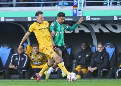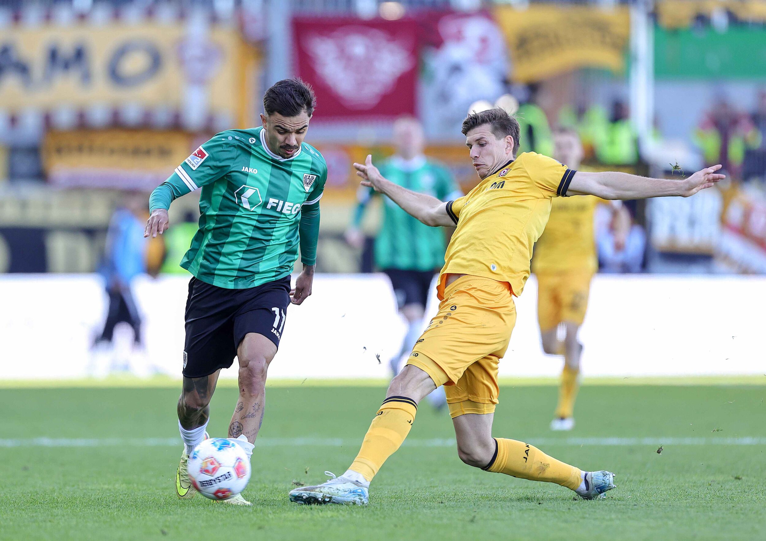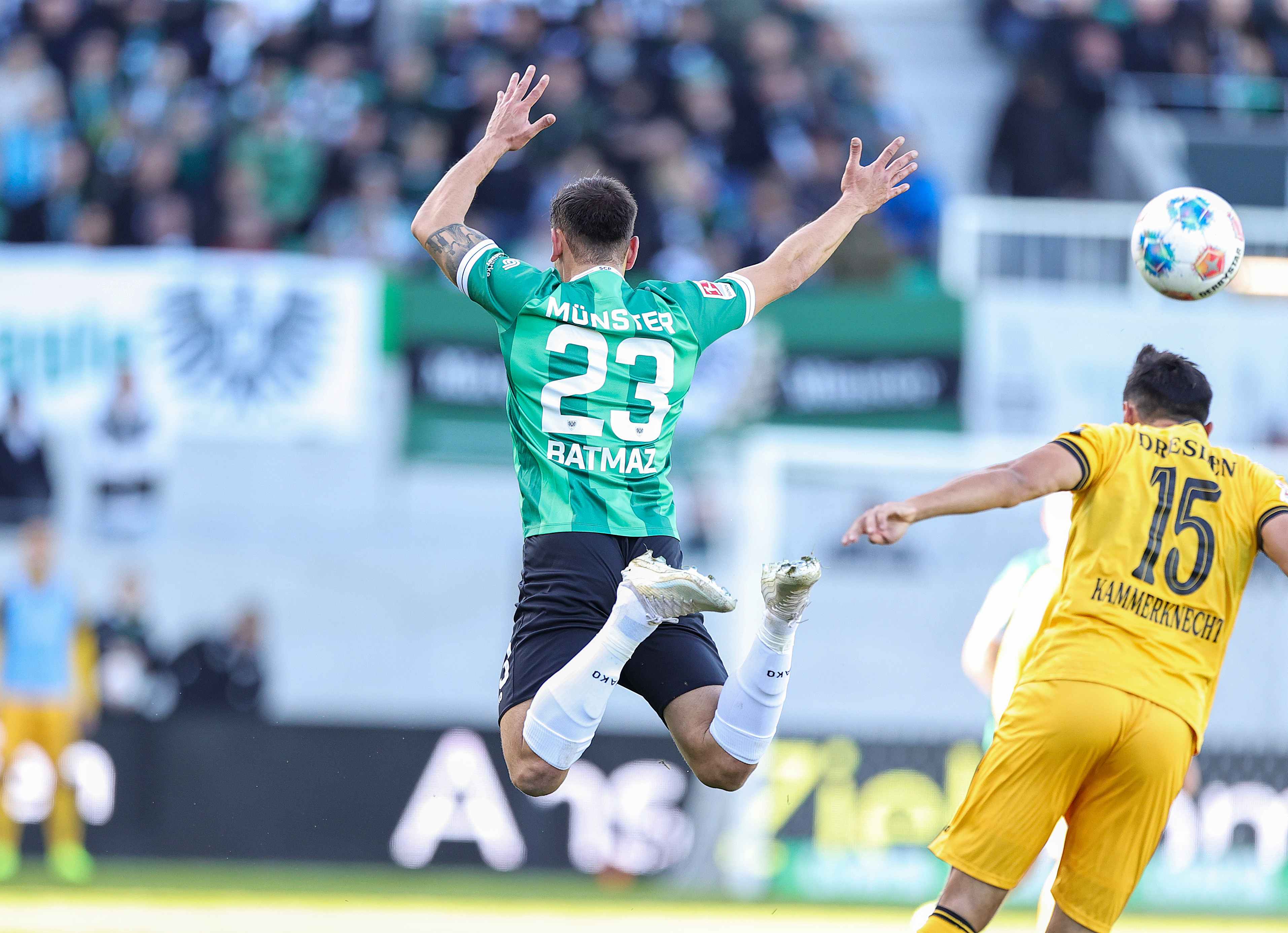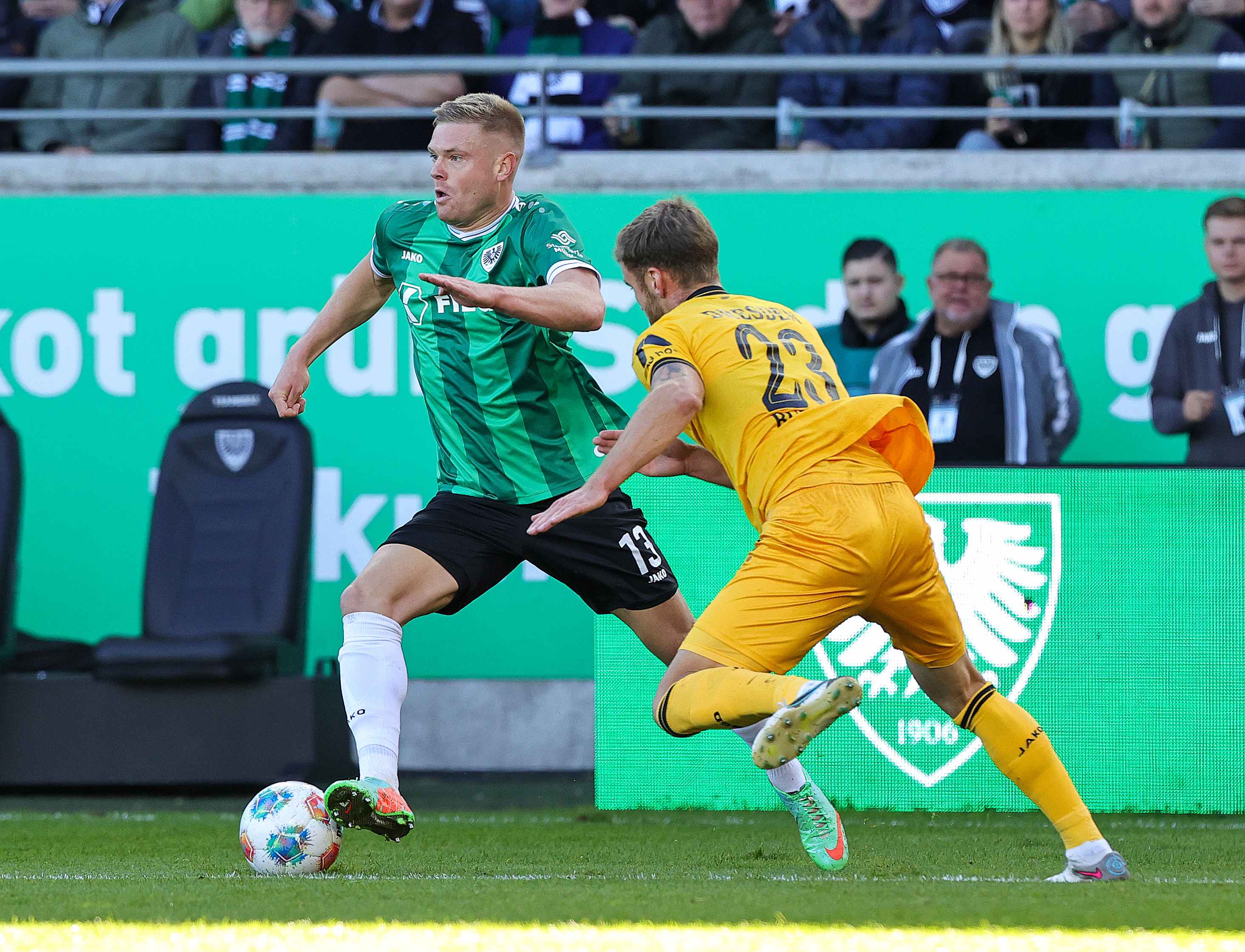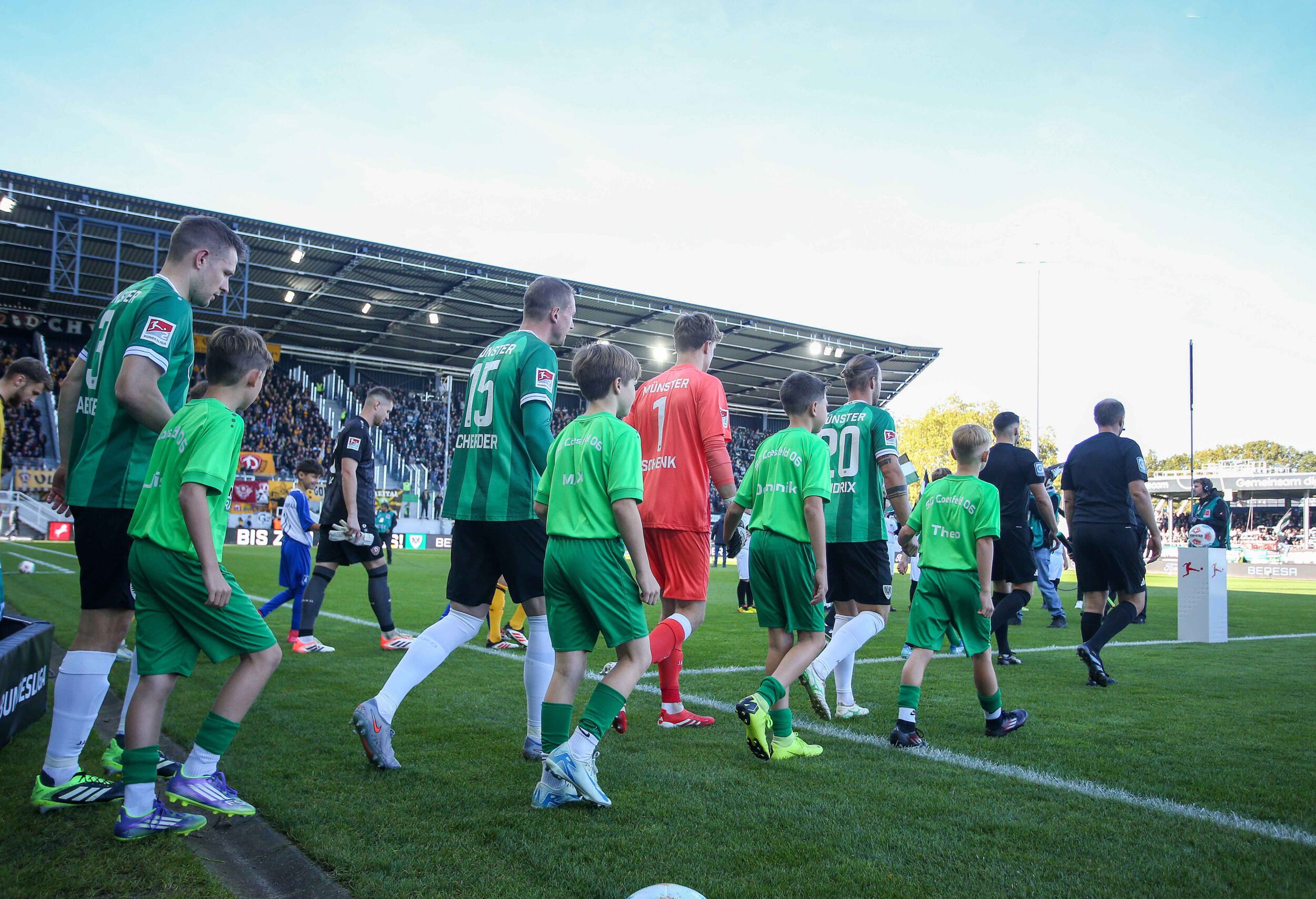 Der SC Preußen muss sich gegen Dynamo Dresden mit einer Punkteteilung begnügen. Vor 10.337 Zuschauern im LVM-Preußenstadion kam die Elf von Alexander Ende nach Rückständen zweimal zurück und holte so ein verdientes 2:2-Unentschieden. Von Anfang an zeigte sich, dass am 9. Spieltag zwei Teams mit offensiver Ausrichtung aufeinandertrafen. Gute Gelegenheiten ergaben sich auf beiden Seiten, wobei Lokotschs abgefälschter Schuss an die Latte dem Tor am nächsten kam (16.). In der 20. Minute zappelte dann plötzlich der Ball im Preußennetz, der Dresdner Menzel behinderte Schenk jedoch in der Szene regelwidrig und Referee Tom Bauer ahndete das. Nur vier Minuten später gab es nichts am Gegentor auszusetzen. Der Ex-Münsteraner Alexander Rossipal verwandelte einen direkten Freistoß sehenswert zur Gästeführung.