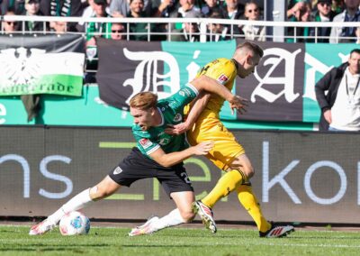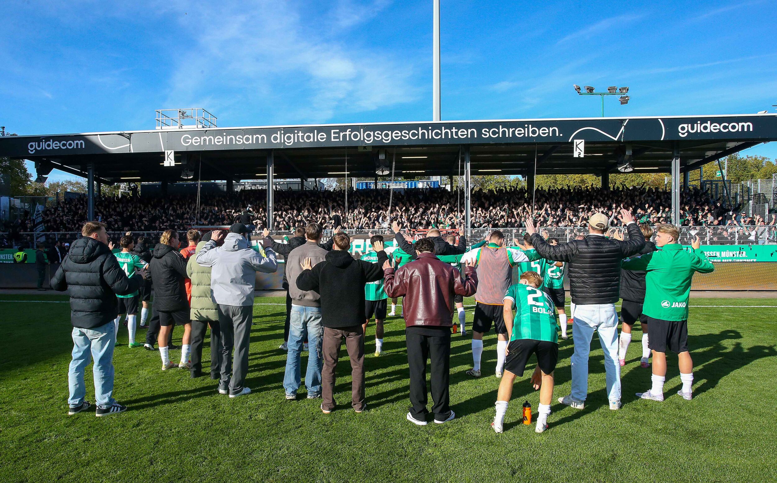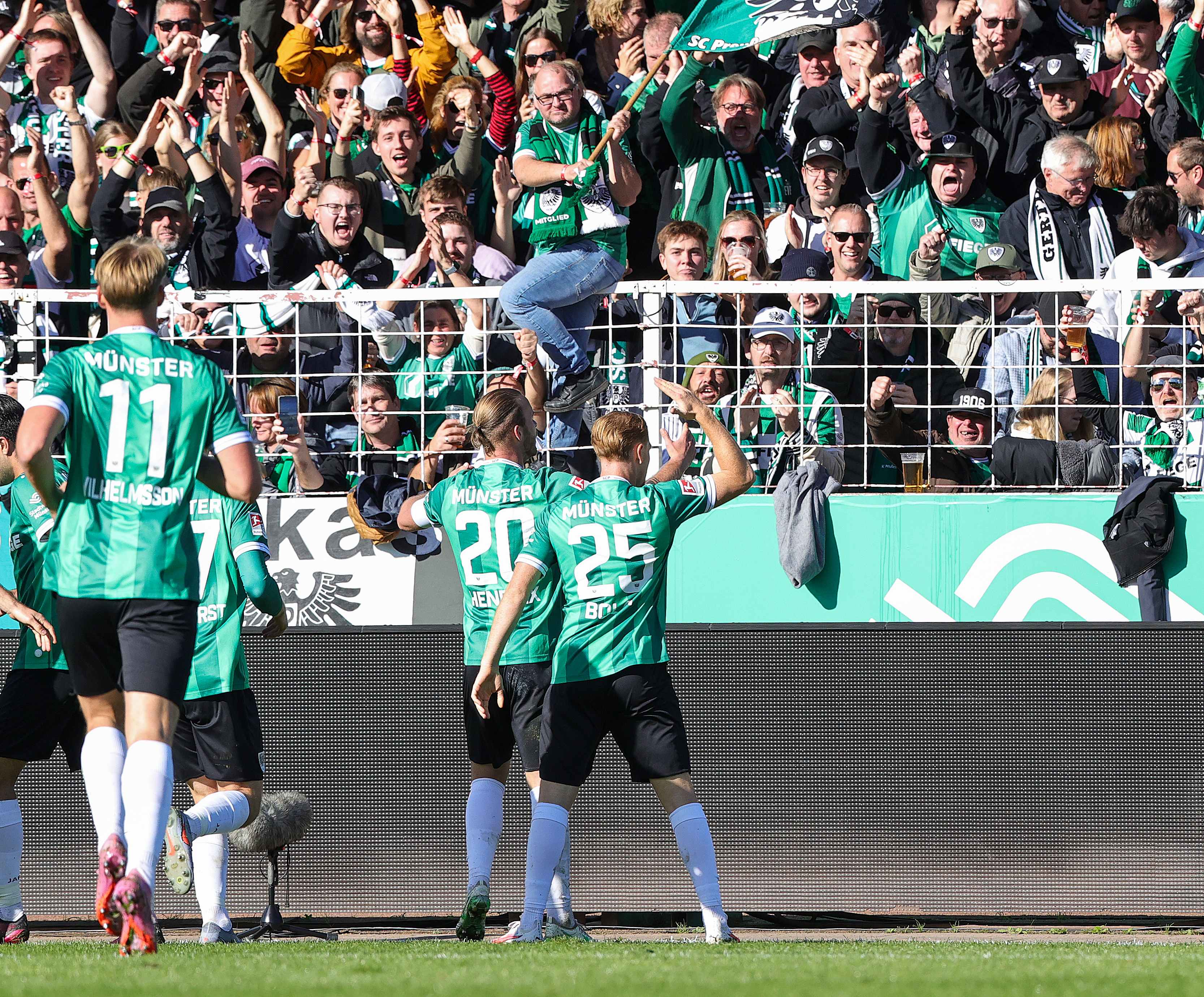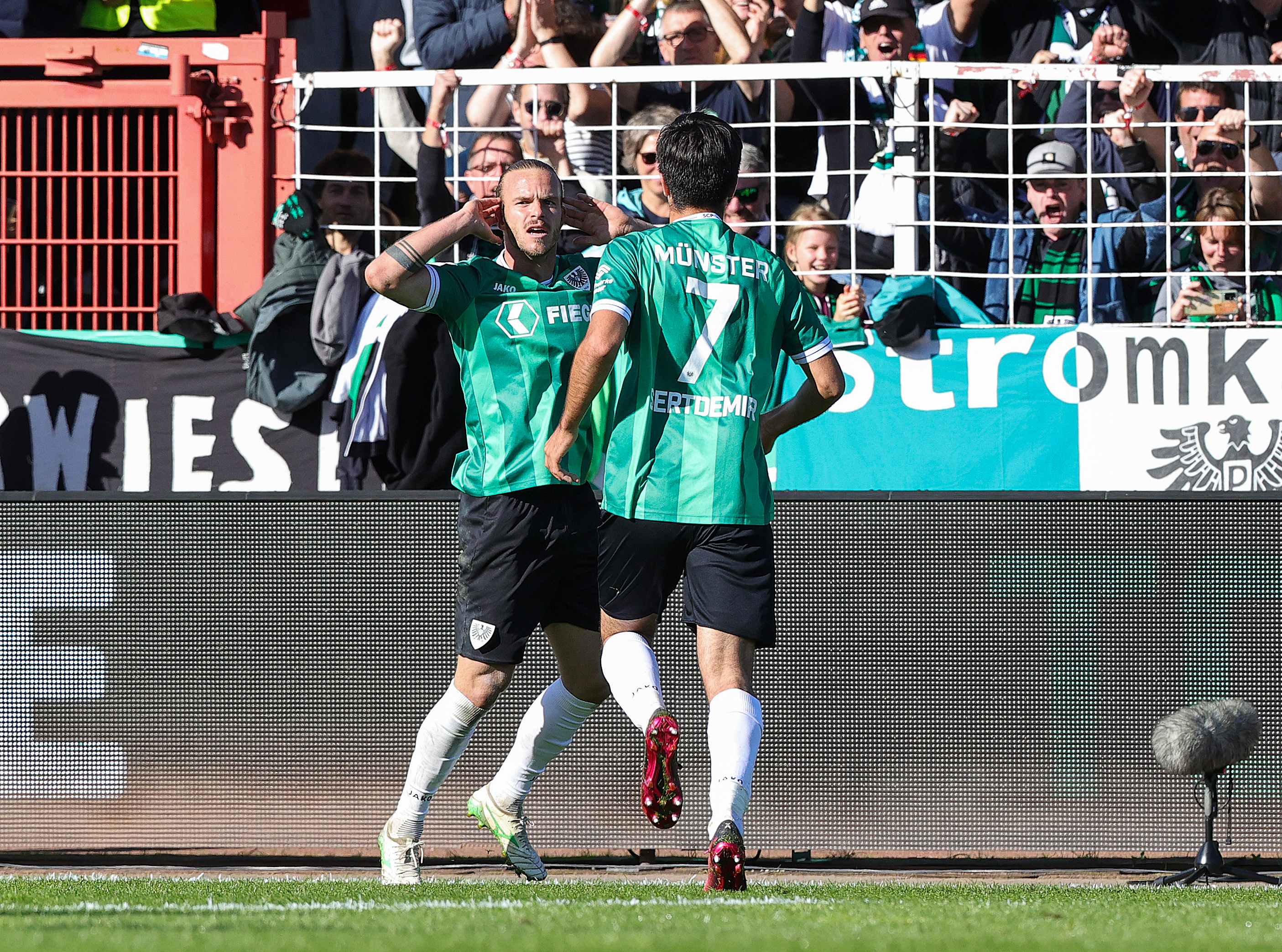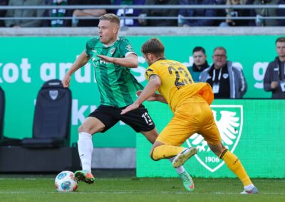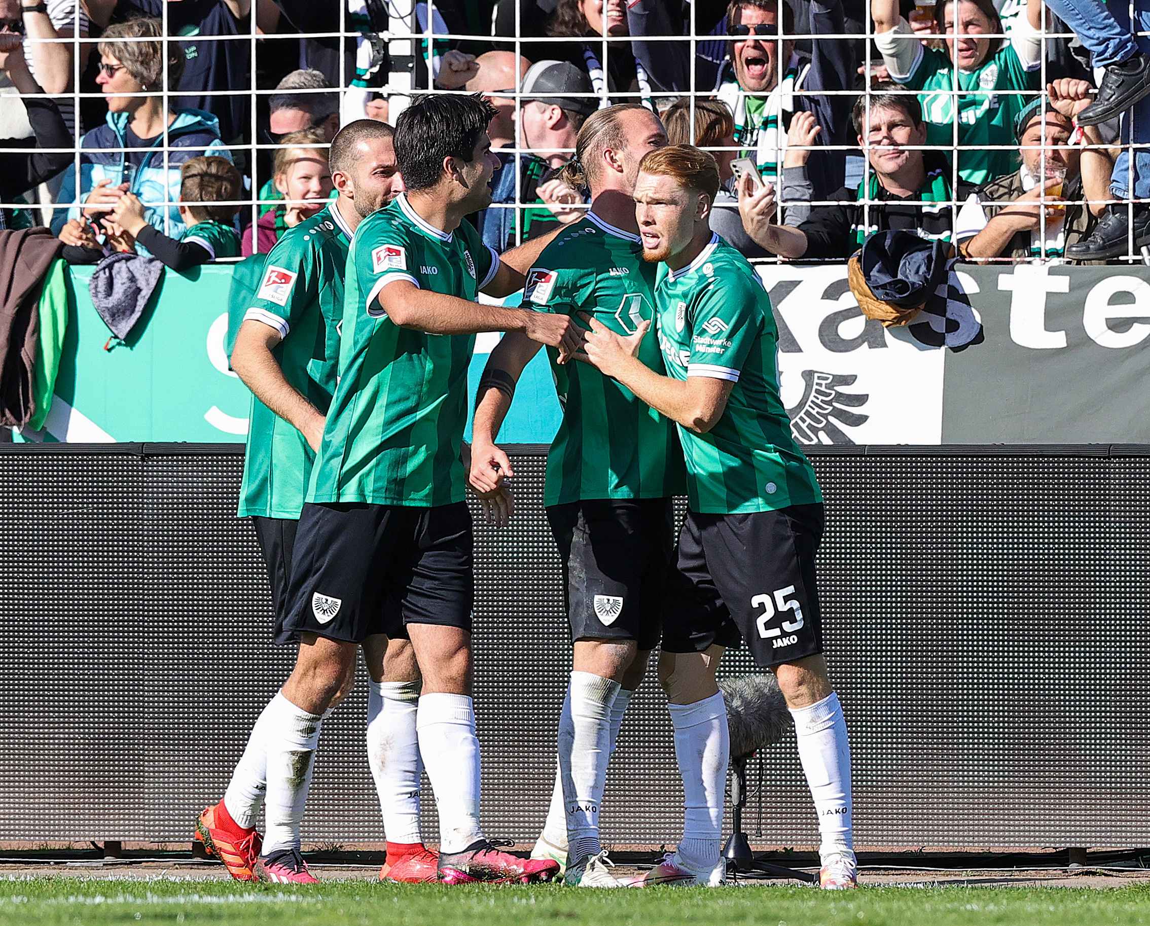 Der SC Preußen muss sich gegen Dynamo Dresden mit einer Punkteteilung begnügen. Vor 10.337 Zuschauern im LVM-Preußenstadion kam die Elf von Alexander Ende nach Rückständen zweimal zurück und holte so ein verdientes 2:2-Unentschieden. Von Anfang an zeigte sich, dass am 9. Spieltag zwei Teams mit offensiver Ausrichtung aufeinandertrafen. Gute Gelegenheiten ergaben sich auf beiden Seiten, wobei Lokotschs abgefälschter Schuss an die Latte dem Tor am nächsten kam (16.). In der 20. Minute zappelte dann plötzlich der Ball im Preußennetz, der Dresdner Menzel behinderte Schenk jedoch in der Szene regelwidrig und Referee Tom Bauer ahndete das. Nur vier Minuten später gab es nichts am Gegentor auszusetzen. Der Ex-Münsteraner Alexander Rossipal verwandelte einen direkten Freistoß sehenswert zur Gästeführung.