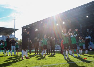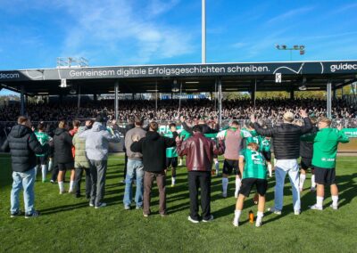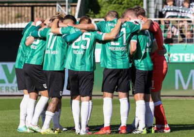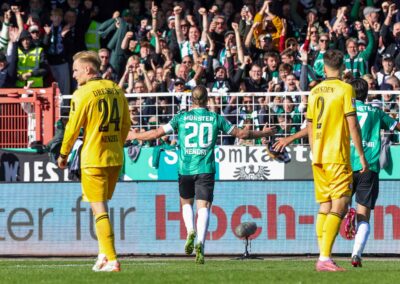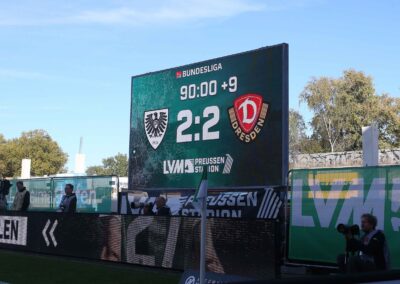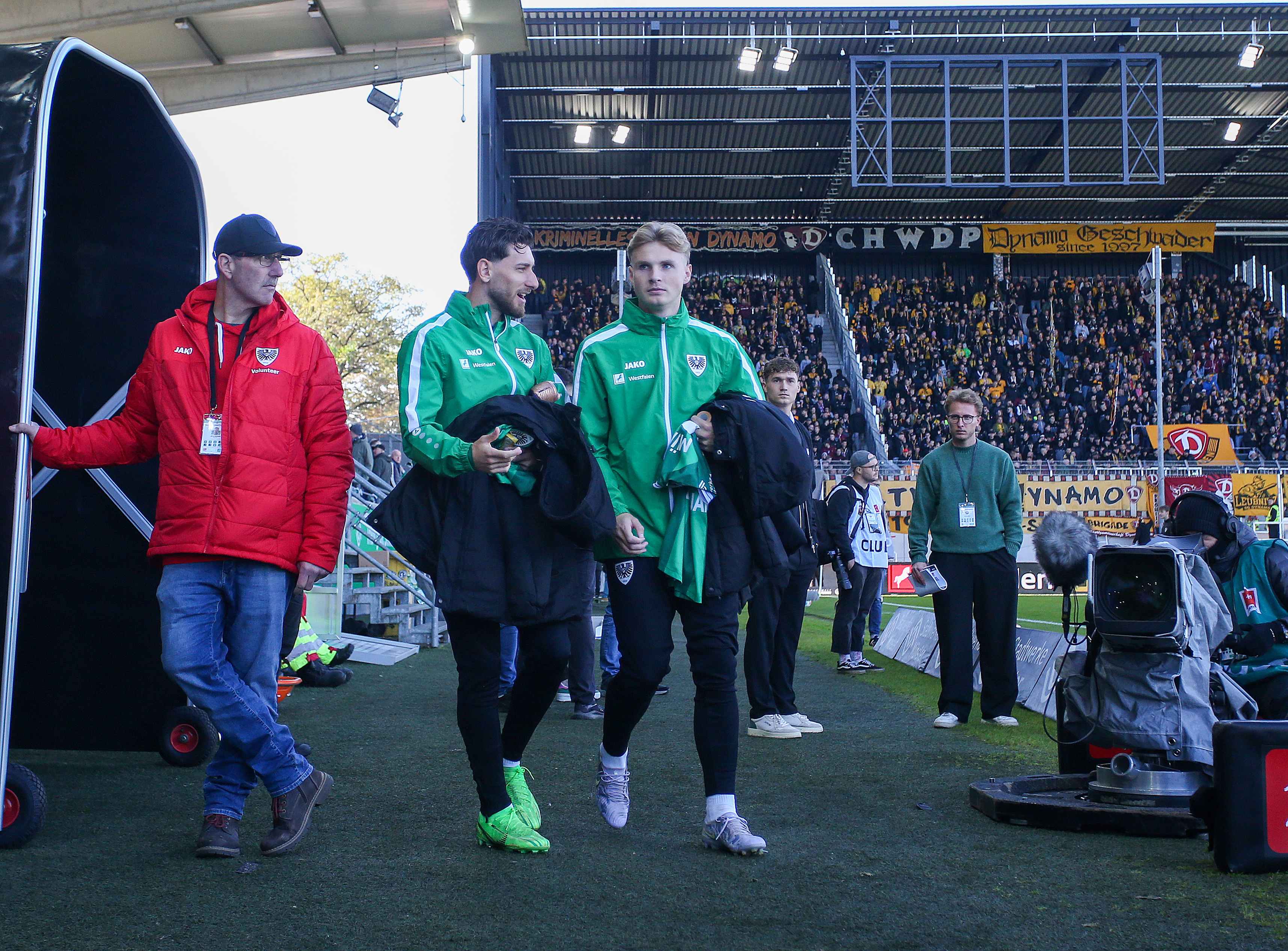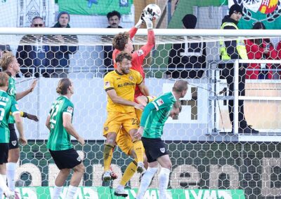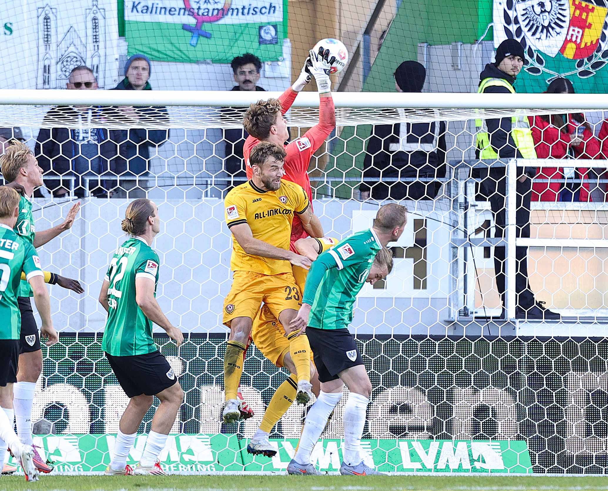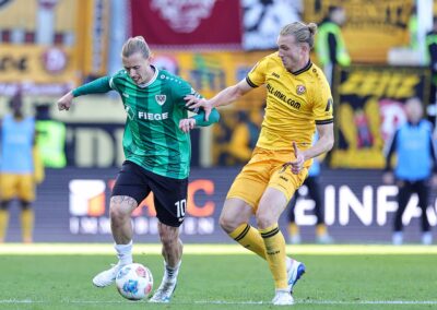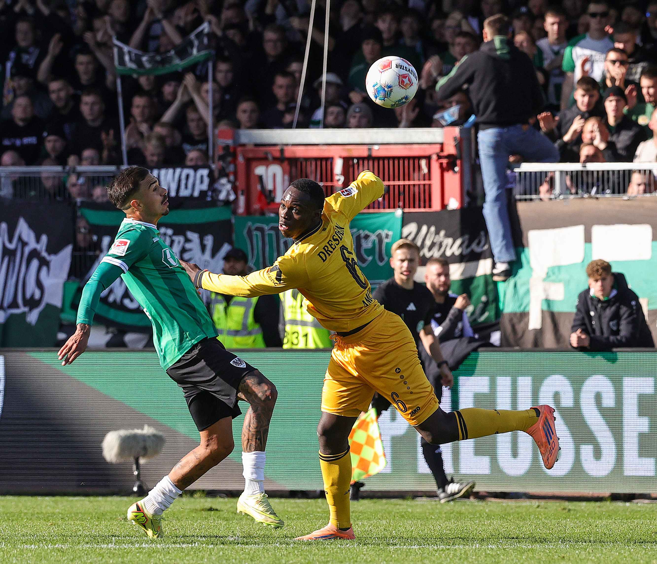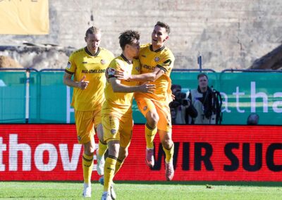 Mit viel Energie kamen die Preußen aus der Kabine und drängten auf den Ausgleich. Am Strafraum gewann Jorrit Hendrix den Ball und zog mit Wucht ins lange Eck ab – 1:1 (51.). Der verdiente Ausgleich fünf Minuten nach dem Seitenwechsel. Doch die Gäste sollten erneut per Standard zuschlagen. Diesmal servierte Rossipal den Ball auf den Kopf von Lars Bünning, der aus kurzer Distanz einnetzte (71.). Wieder bewiesen die Adlerträger Charakter. Vom linken Strafraumeck fasste sich Luca Bolay ein Herz, sein strammer Schuss prallte vom Pfosten auf den Dresdner Bünning, der den Ball ins eigene Tor bugsierte (85.). Trotz neunminütiger Nachspielzeit gelang keiner Mannschaft mehr der Lucky Punch, jedoch beendeten die Gäste nach Platzverweis für Stefan Kutschke (90.+8) die Partie zu zehnt.