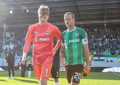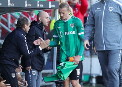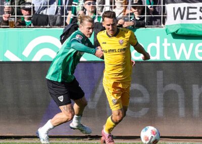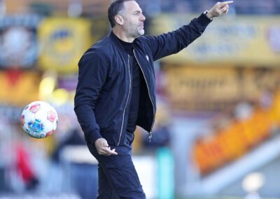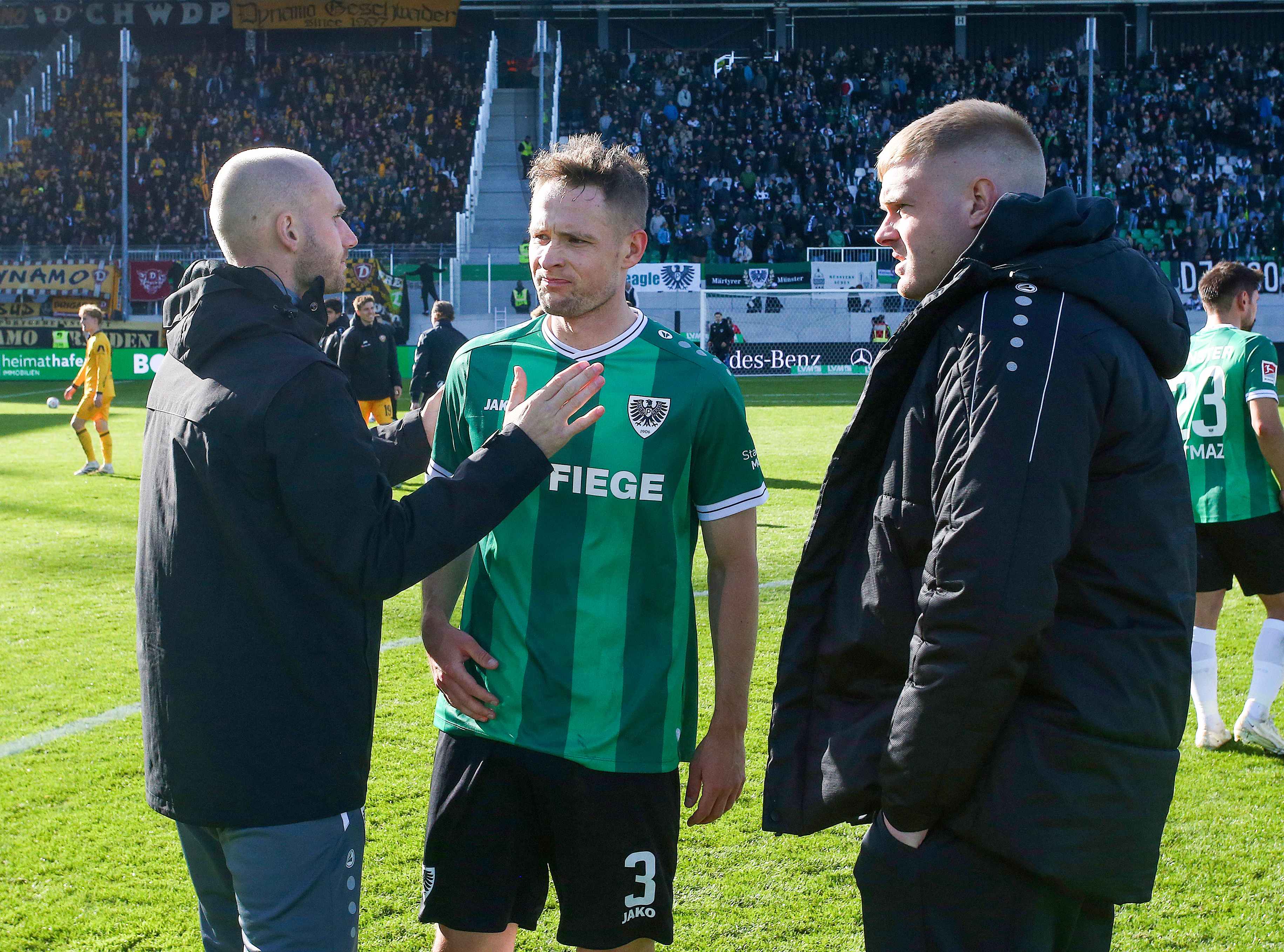 Preußencoach Alex Ende: „Die erste Halbzeit haben wir so gestaltet, dass wir unglücklich in Rückstand geraten sind. Nach dem Ausgleich habe ich mir erhofft, dass wir den Push und die Energie aus dem Stadion mitnehmen. In der Phase mussten wir ein paar schwierige Situationen überstehen. Trotzdem Respekt an die Mannschaft, dass wir gegen Dresden zweimal nach Rückstand zurückgekommen sind. Das wir heute wieder zwei Standardgegentore kassieren, ist ein Thema, das in den letzten Wochen wiederholt aufgetreten ist.“