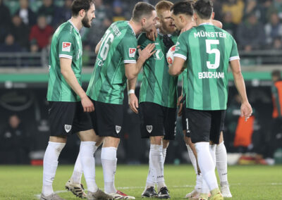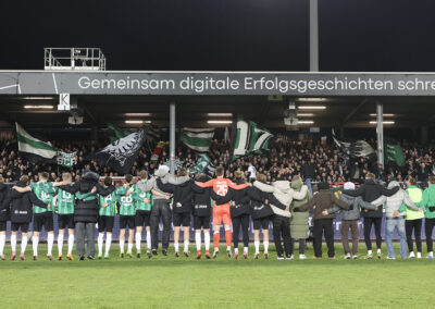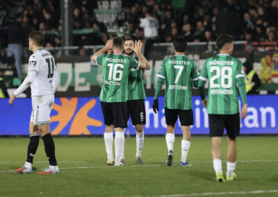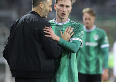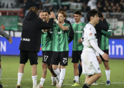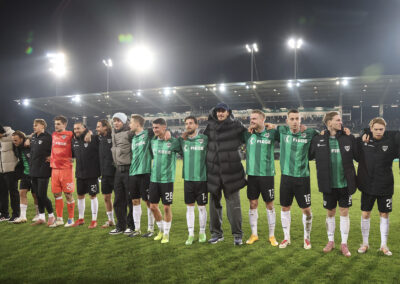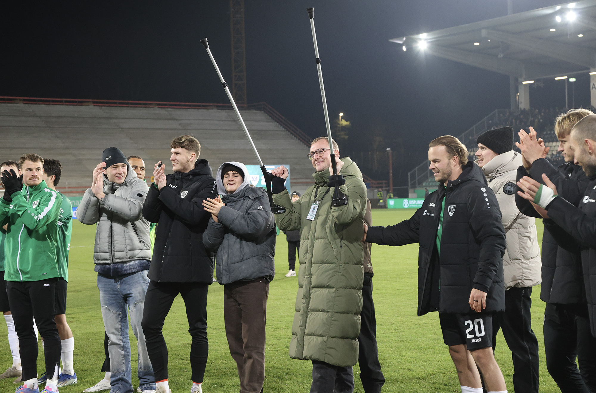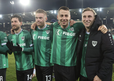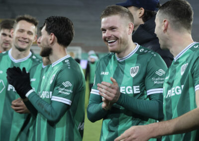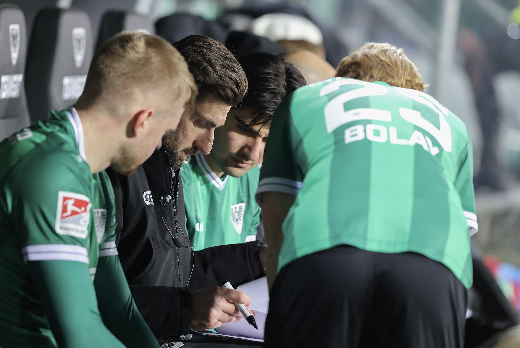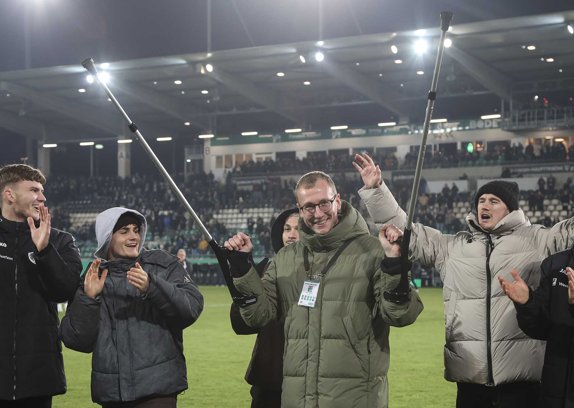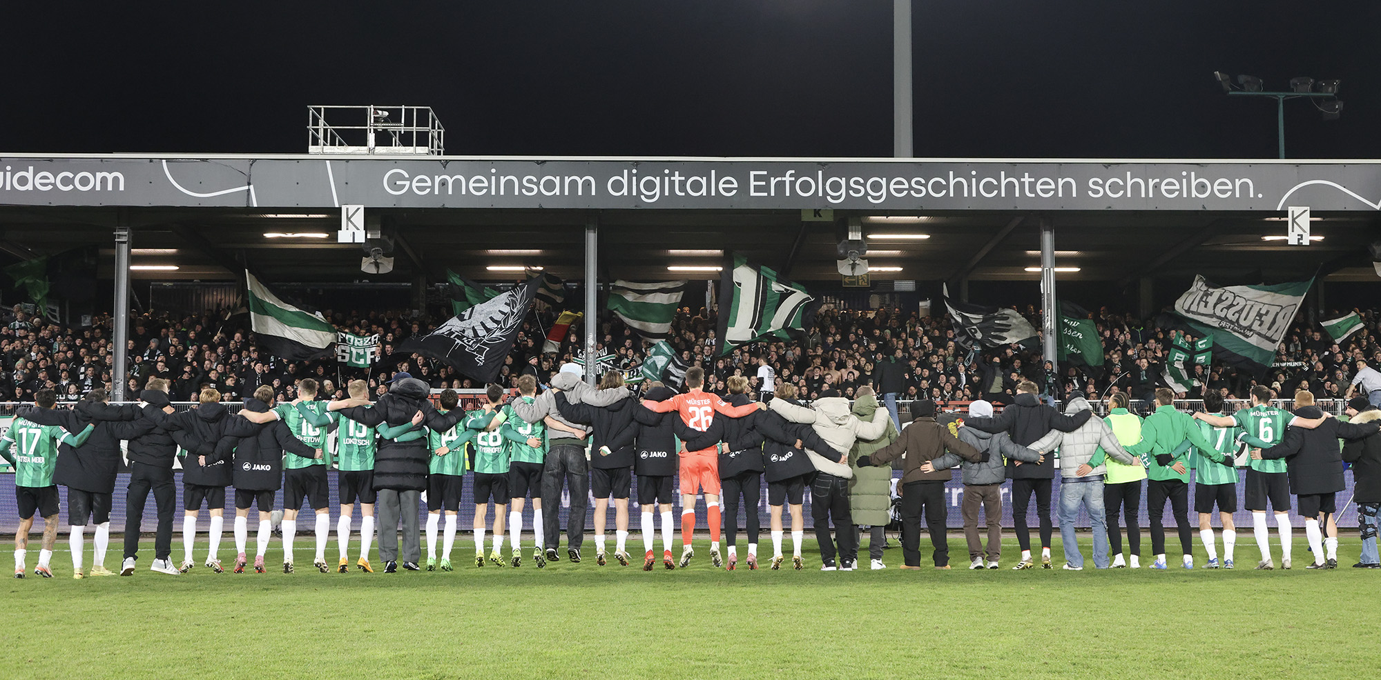 Ende: „Das war ein Produkt einer unfassbaren Moral, eines großen Herzens der Truppe. Vom Zeitpunkt her war es sicherlich glücklich, über das ganze Spiel gesehen aber nicht. Wir haben die vielleicht offensivstärkste Mannschaft der Liga über weite Teile des Spiels von unserer Box weggehalten und wenig zugelassen. Und auch nach dem 0:2-Rückstand haben wir nie aufgegeben – Ich hatte immer noch das Gefühl, dass wir das Stadion nochmal anzünden können. Mit der einen oder anderen sauberen Verlagerung hätten wir vielleicht noch mehr kreieren können. Letztendlich bin ich aber Stolz, dass sich die Mannschaft – wie schon die ganze Saison – mutig gezeigt und dafür belohnt hat.“