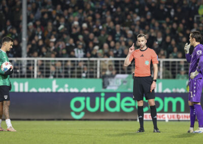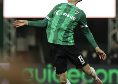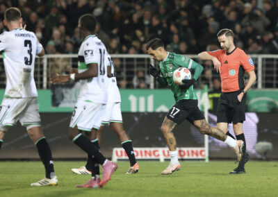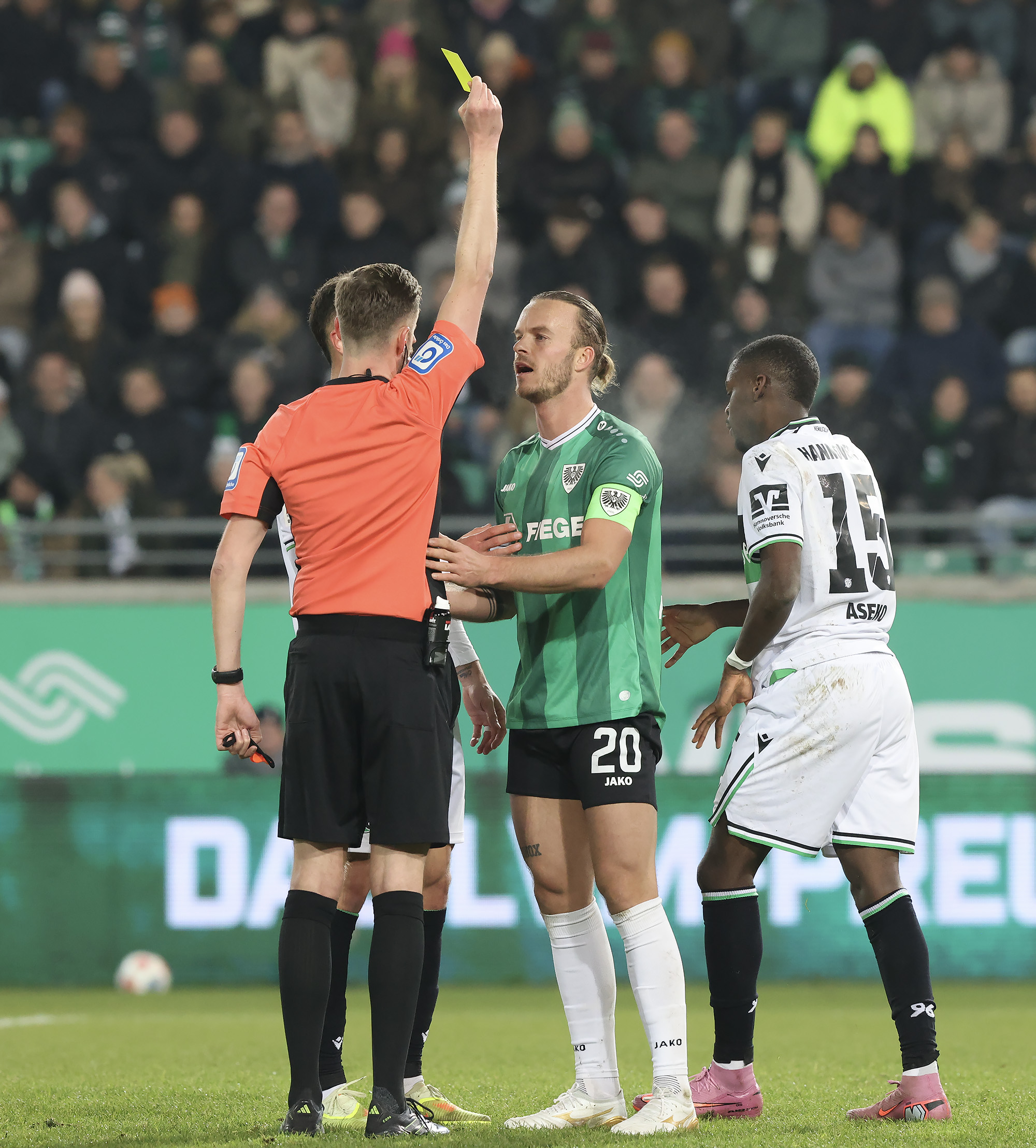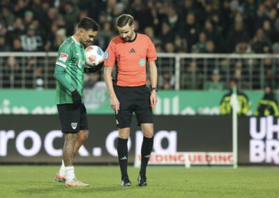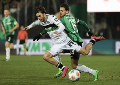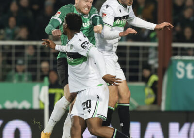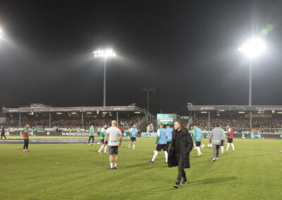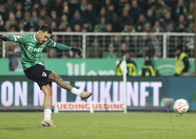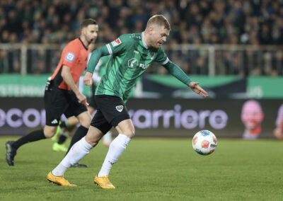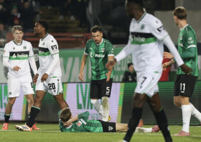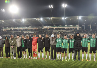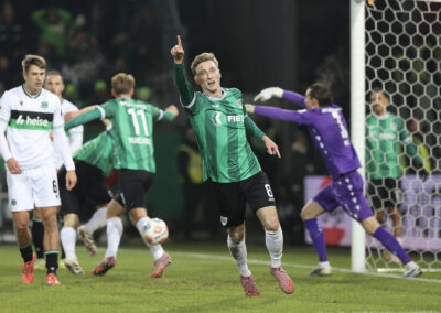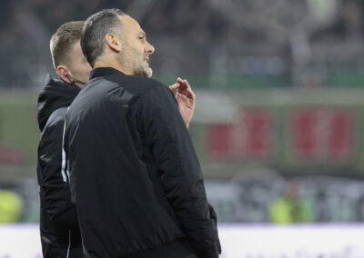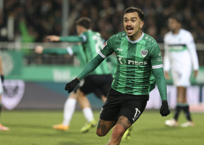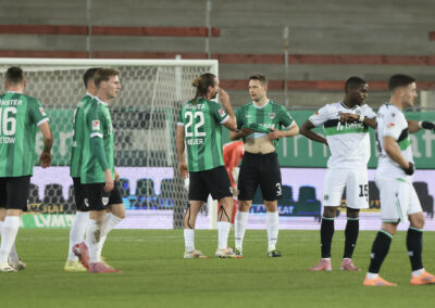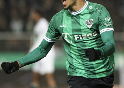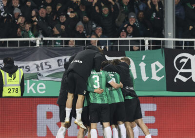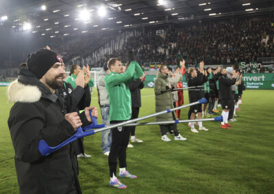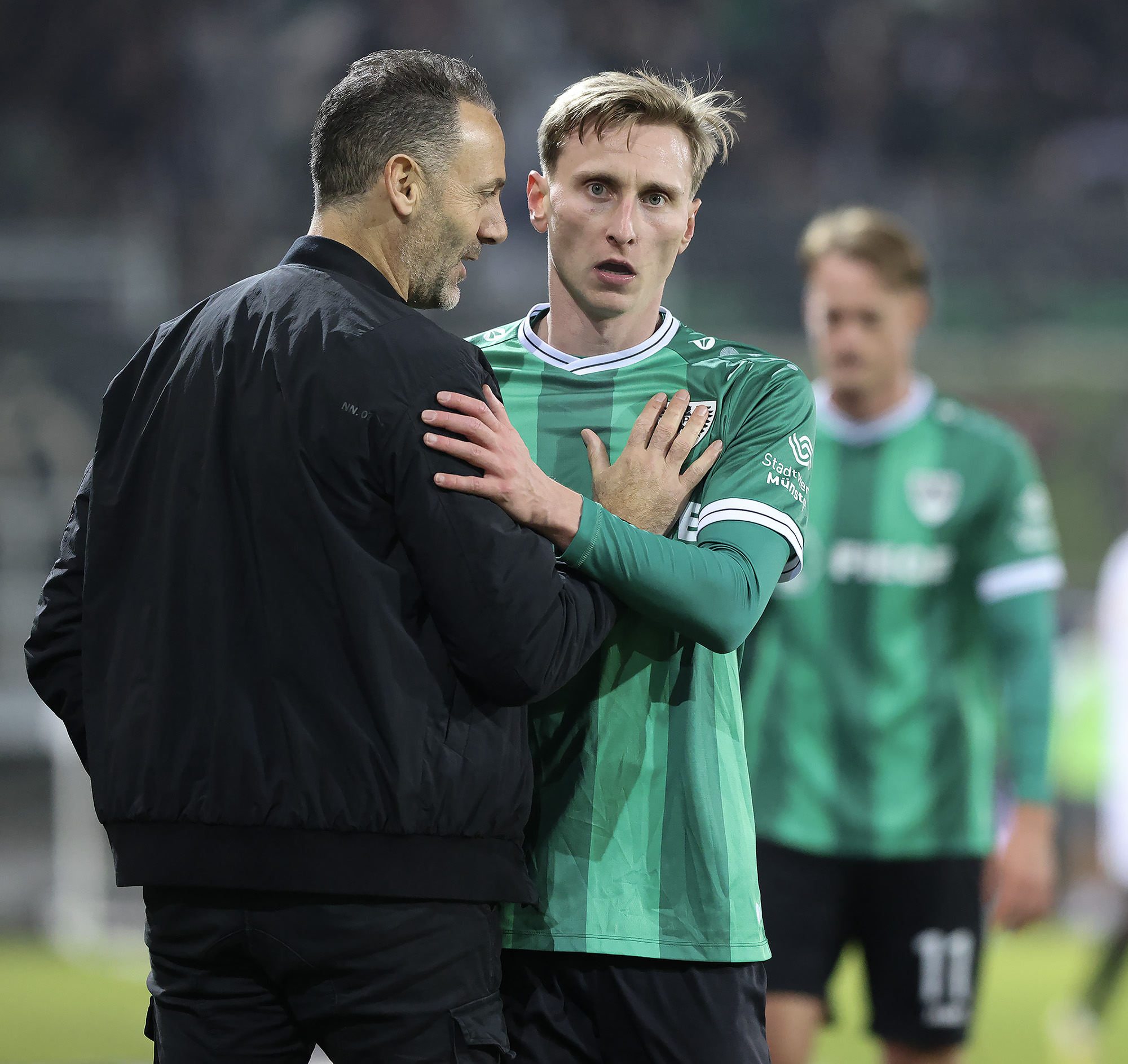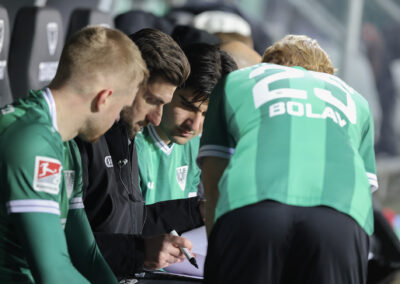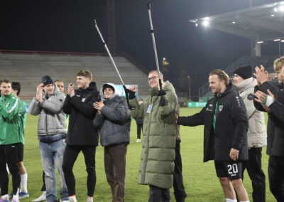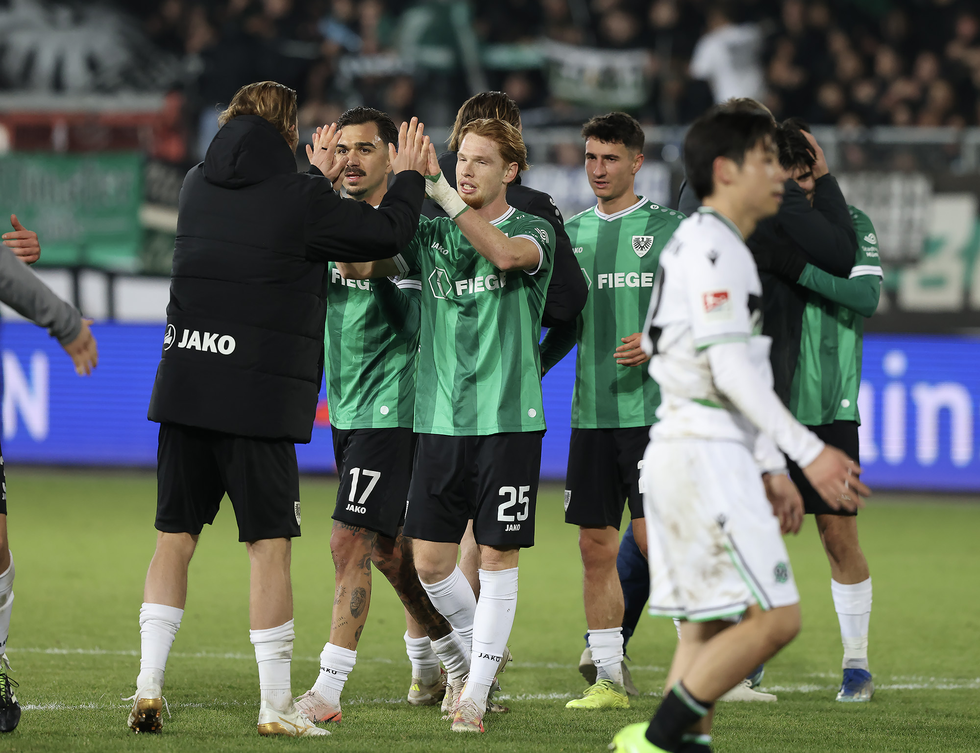 Ende: „Das war ein Produkt einer unfassbaren Moral, eines großen Herzens der Truppe. Vom Zeitpunkt her war es sicherlich glücklich, über das ganze Spiel gesehen aber nicht. Wir haben die vielleicht offensivstärkste Mannschaft der Liga über weite Teile des Spiels von unserer Box weggehalten und wenig zugelassen. Und auch nach dem 0:2-Rückstand haben wir nie aufgegeben – Ich hatte immer noch das Gefühl, dass wir das Stadion nochmal anzünden können. Mit der einen oder anderen sauberen Verlagerung hätten wir vielleicht noch mehr kreieren können. Letztendlich bin ich aber Stolz, dass sich die Mannschaft – wie schon die ganze Saison – mutig gezeigt und dafür belohnt hat.“