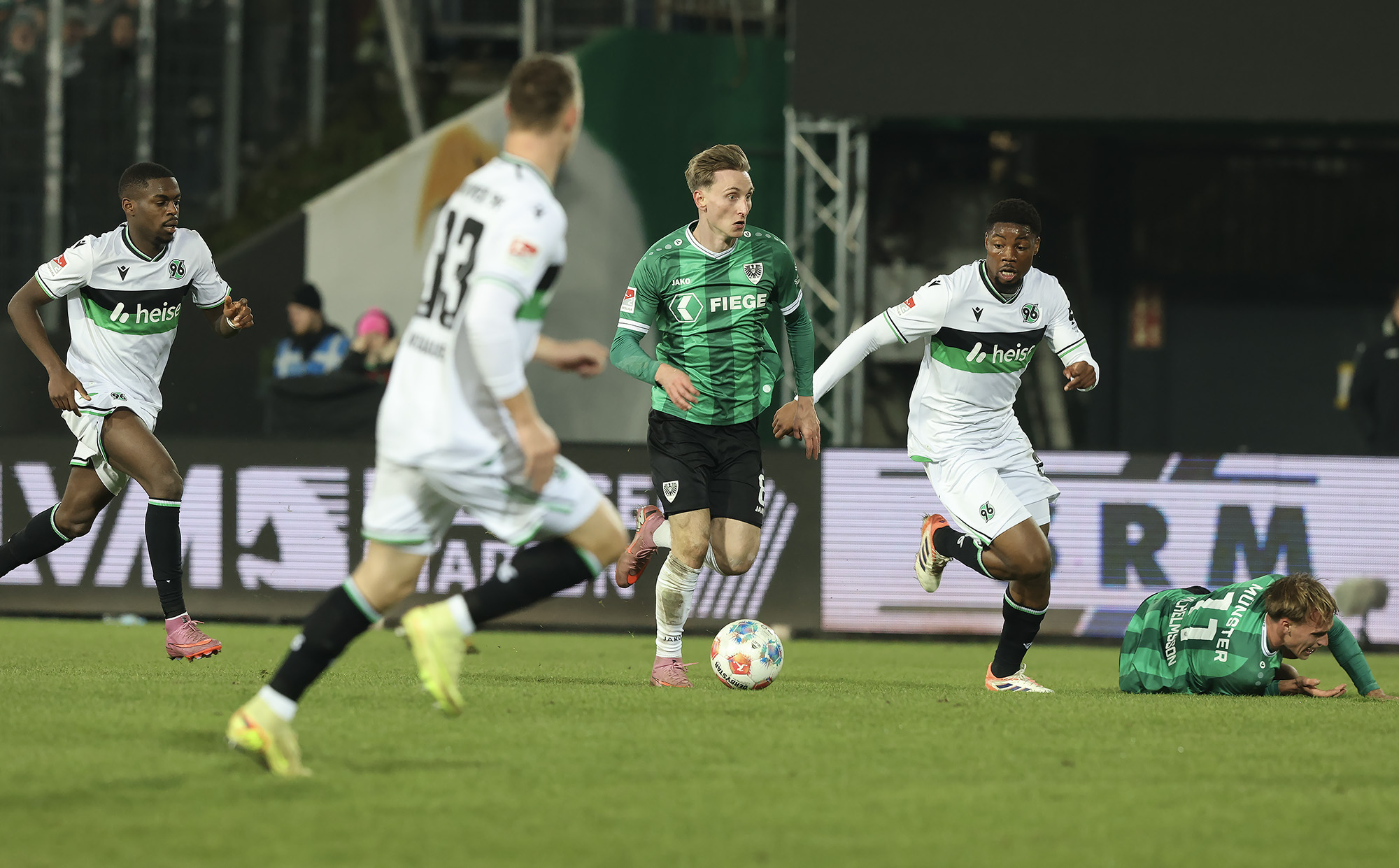 Aufstellung H96: Noll – Ghia (Okon, 46.), Tomiak, Nawrocki – Matsuda (Neubauer, 46.), Leopold, Aseko Nkili, Oudenne – Bundu (Allgeier, 72.), Källman (Pichler, 64.), Chakroun (Yokota, 25.)