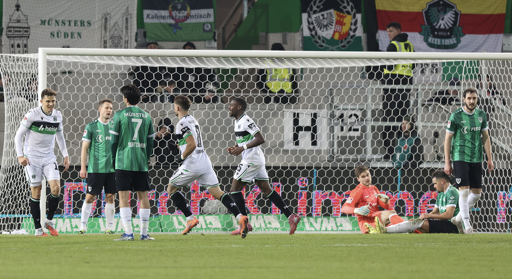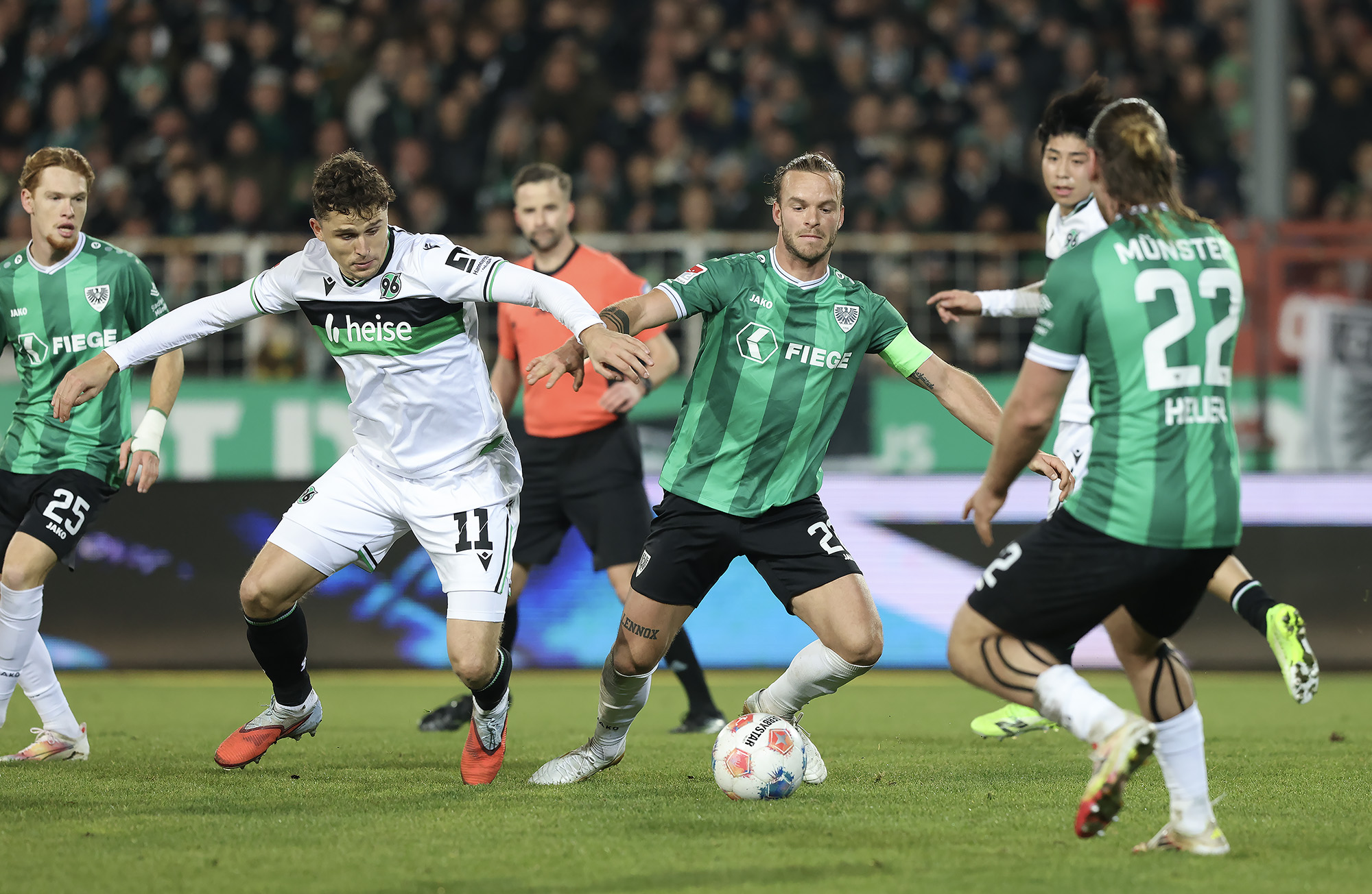Tollhaus LVM-Preußenstadion! Wie im Derby beweist der SC Preußen einen langen Atem und schlägt gegen den Tabellendritten Hannover 96 spät zu. Effiziente Gäste schienen zunächst alles im Griff zu haben, bis sich der SCP mit einer gewaltigen Schlussoffensive in der Nachspielzeit nach 0:2-Rückstand doch noch den Punktgewinn erspielte.
