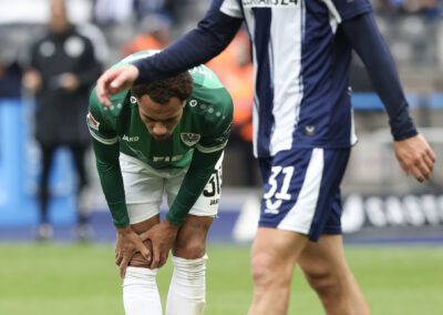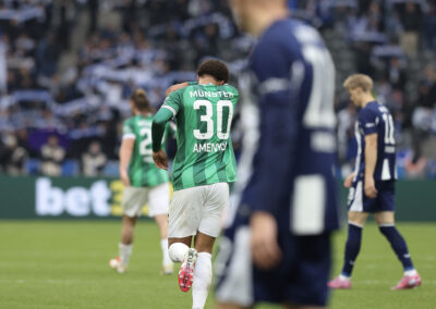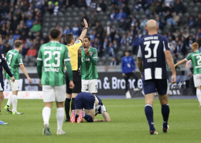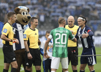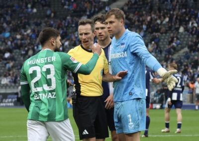 „Du musst intensiv sein, du musst sprinten, musst den Ball schnell bewegen – all das haben wir heute leider nicht so hingekriegt, wie wir es für unser Spiel brauchen. Es ist sehr schade, dass wir nicht von Anfang an die richtigen Signale gesendet haben in diesem Spiel. Wir haben zu viel zugelassen, weil wir die Zweikämpfe nicht so geführt haben, wie man sie führen muss. Durch ein wunderschönes Tor von Eti wurde es noch mal spannend, aber unter dem Strich haben wir uns einen Sieg heute nicht verdient. Hertha hat ein sehr gutes Spiel gemacht, doch wir haben hier unseren Teil zum Ausgang beigetragen“, fasste Preußencoach Alex Ende nach dem Spiel zusammen.