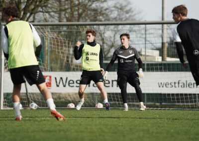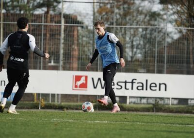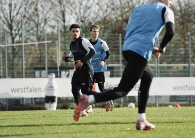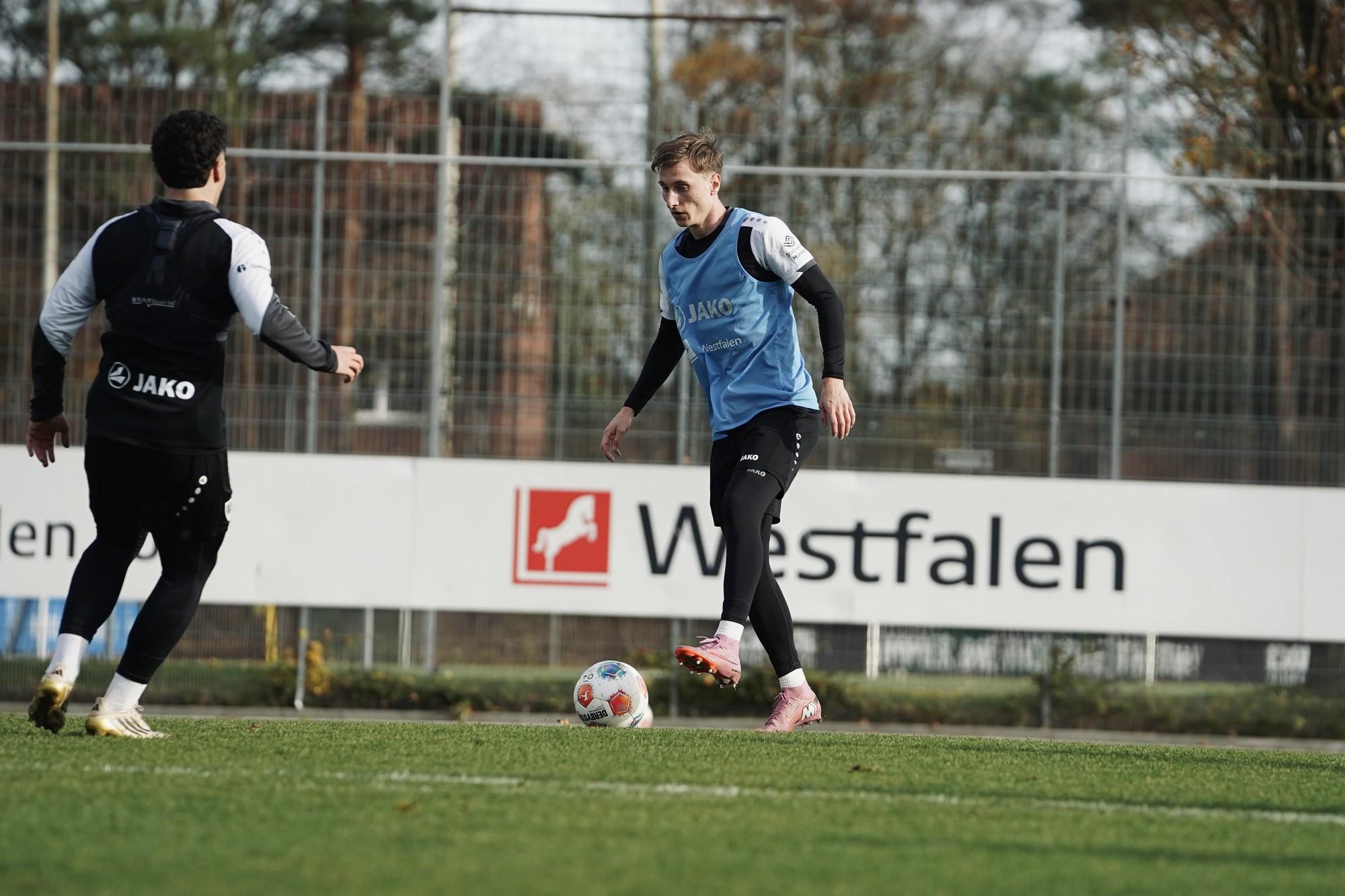Wer dieser Tage beim Training im Schatten des LVM-Preußenstadions zugeschaut hat, dürfte den einen oder anderen Spieler vermisst und manch unbekanntes Gesicht entdeckt haben. Es war keine gewöhnliche, aber eine sehr wertvolle Trainingswoche beim SCP. Die Länderspielpause nutzten die Adlerträger, um die Spieler, die zuletzt viele Einsätze in den Beinen hatten, etwas zu schonen und mit individuellen Plänen auszustatten und diejenigen, die wenig Spielminuten hatten oder aus Verletzungen kommen, zielgerichtet und individuell zu fördern.