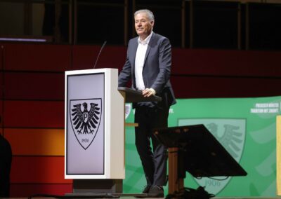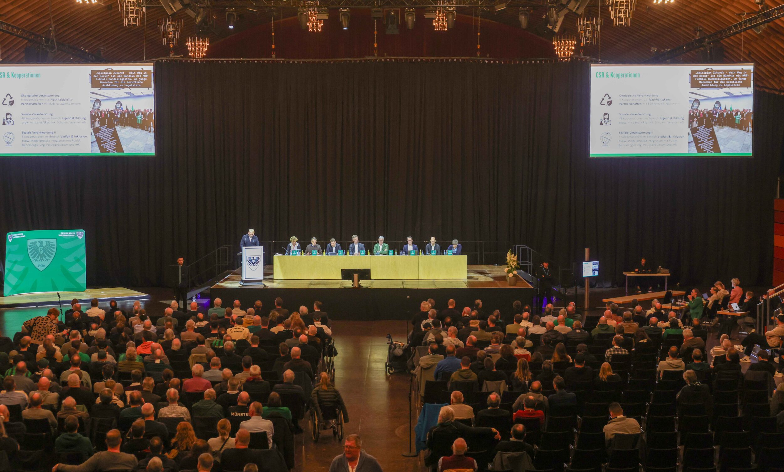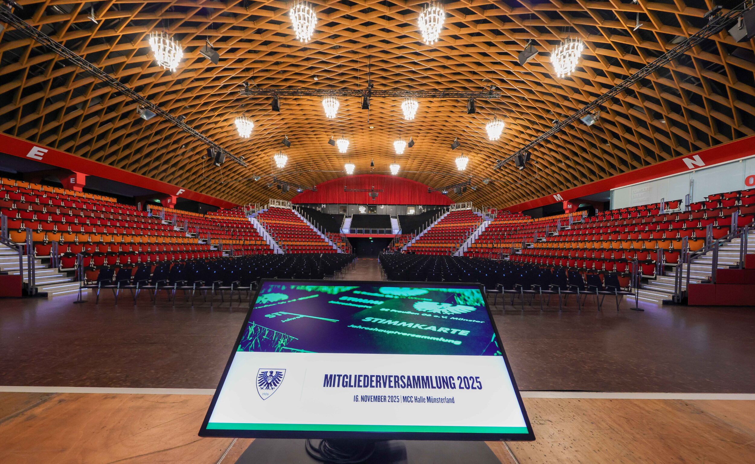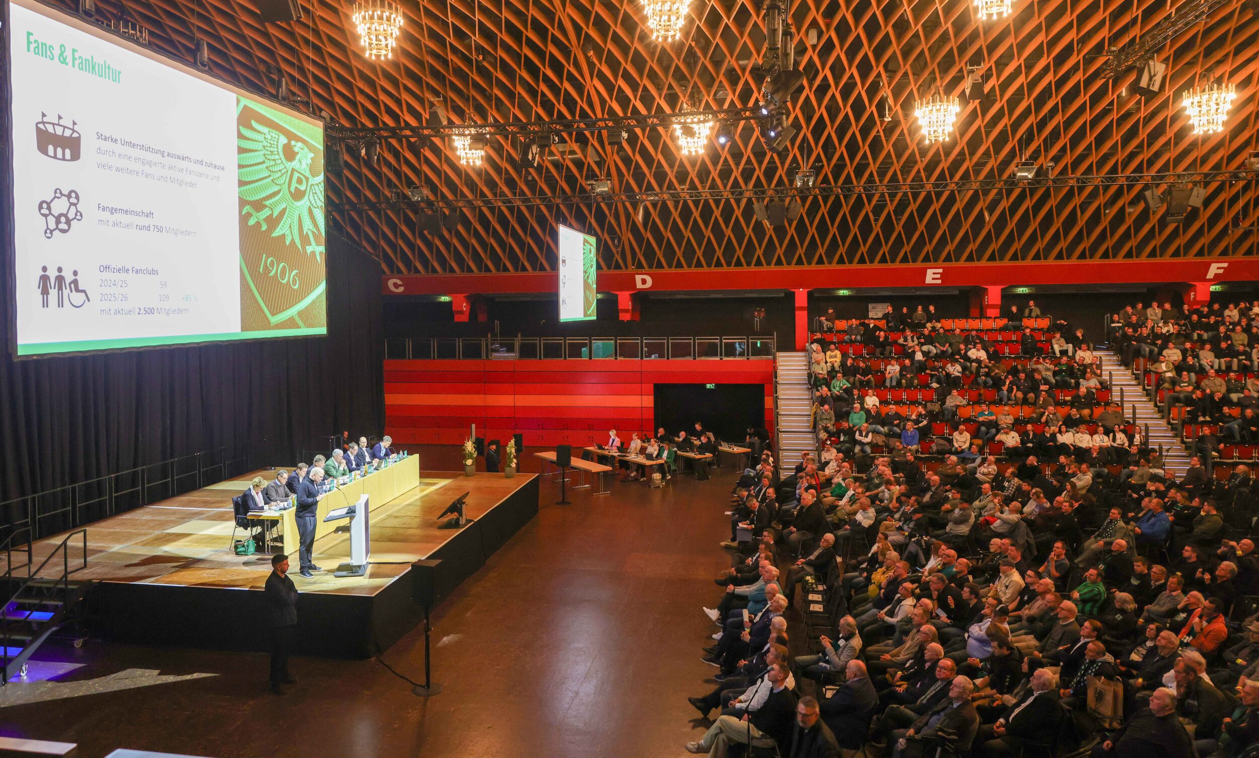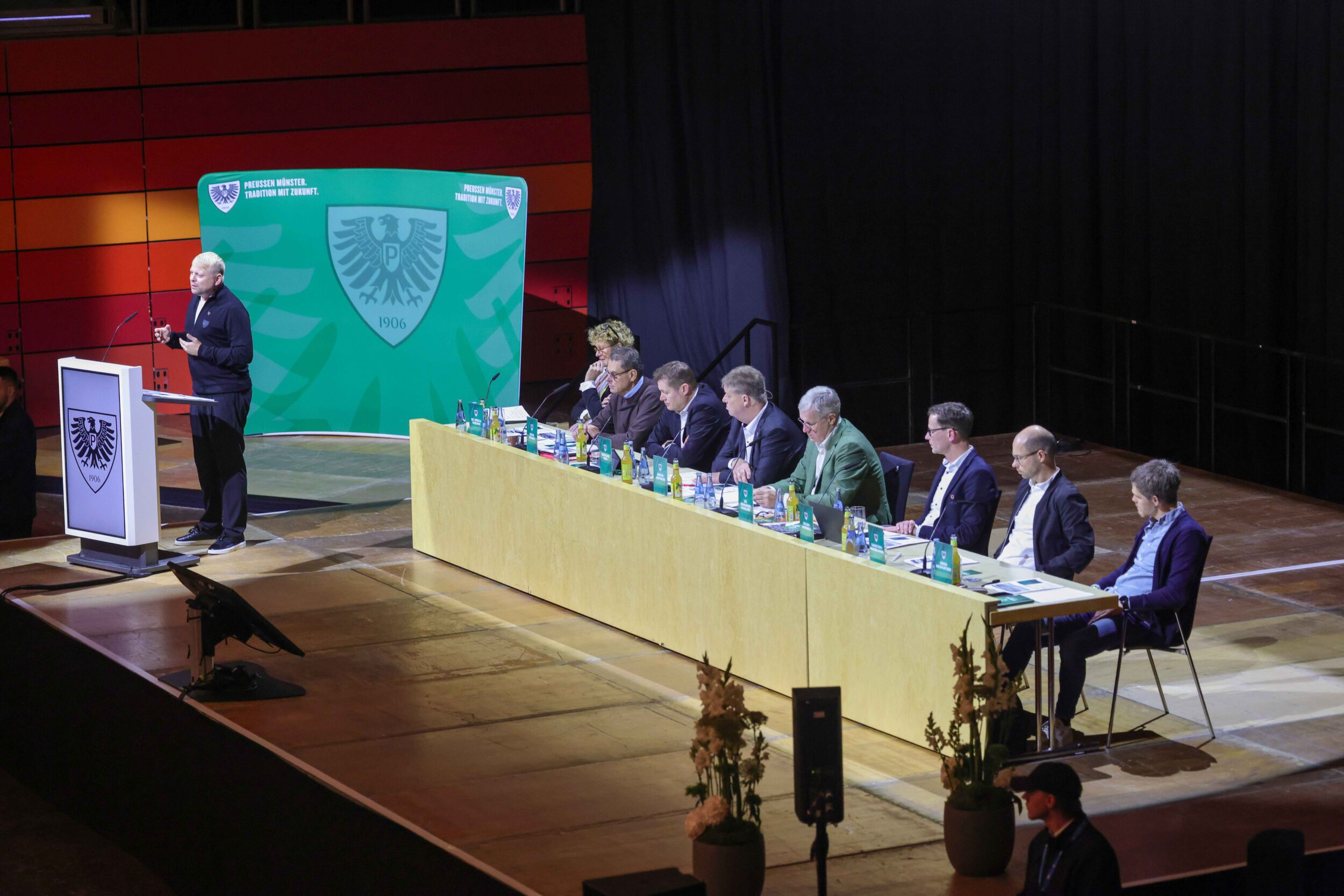 Hat es das schon mal gegeben? 1.011 Mitglieder bei einer Jahreshauptversammlung des SC Preußen 06 e.V. Münster? Es dürfte die Rekordkulisse beim Adlerclub gewesen sein – und dafür bot das Messe und Congress Centrum Halle Münsterland am Sonntag fünfeinhalb Stunden lang den perfekten Rahmen. Die Location stimmte, das Ambiente und die Organisation auch. Viele positive Entwicklungen wurden hervorgehoben, aber auch kritische Töne offen angesprochen. All das führte zu einer zwar langen aber insgesamt wieder harmonischen und fairen Versammlung. Wir haben die Bilder des Tages für euch in einer umfangreichen Galerie zusammengetragen. Viel Spaß beim Kneistern!