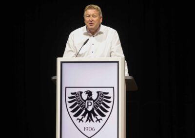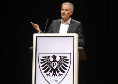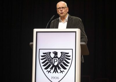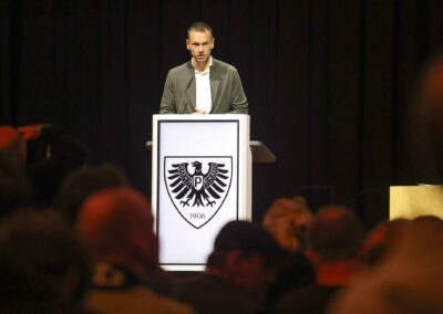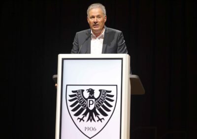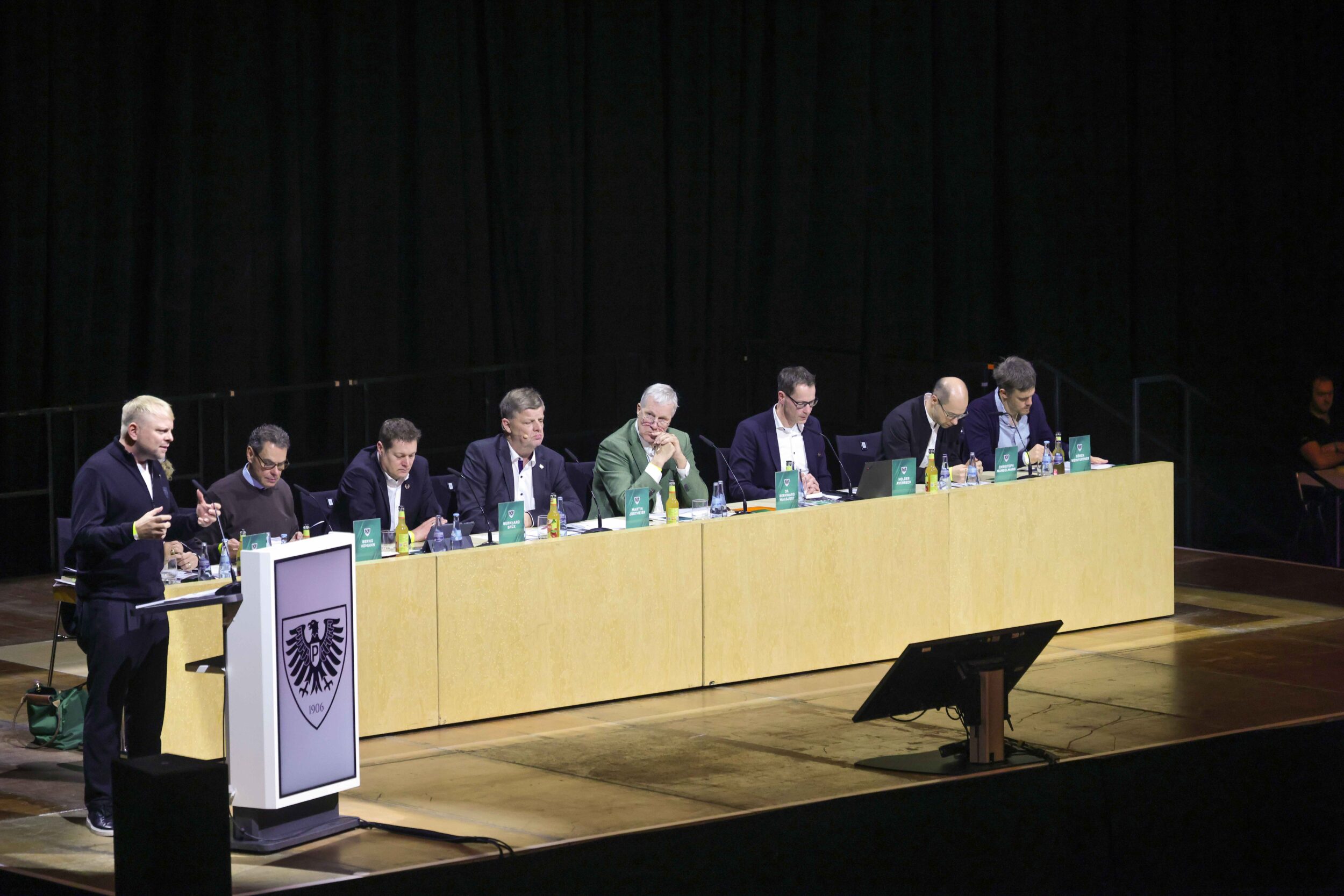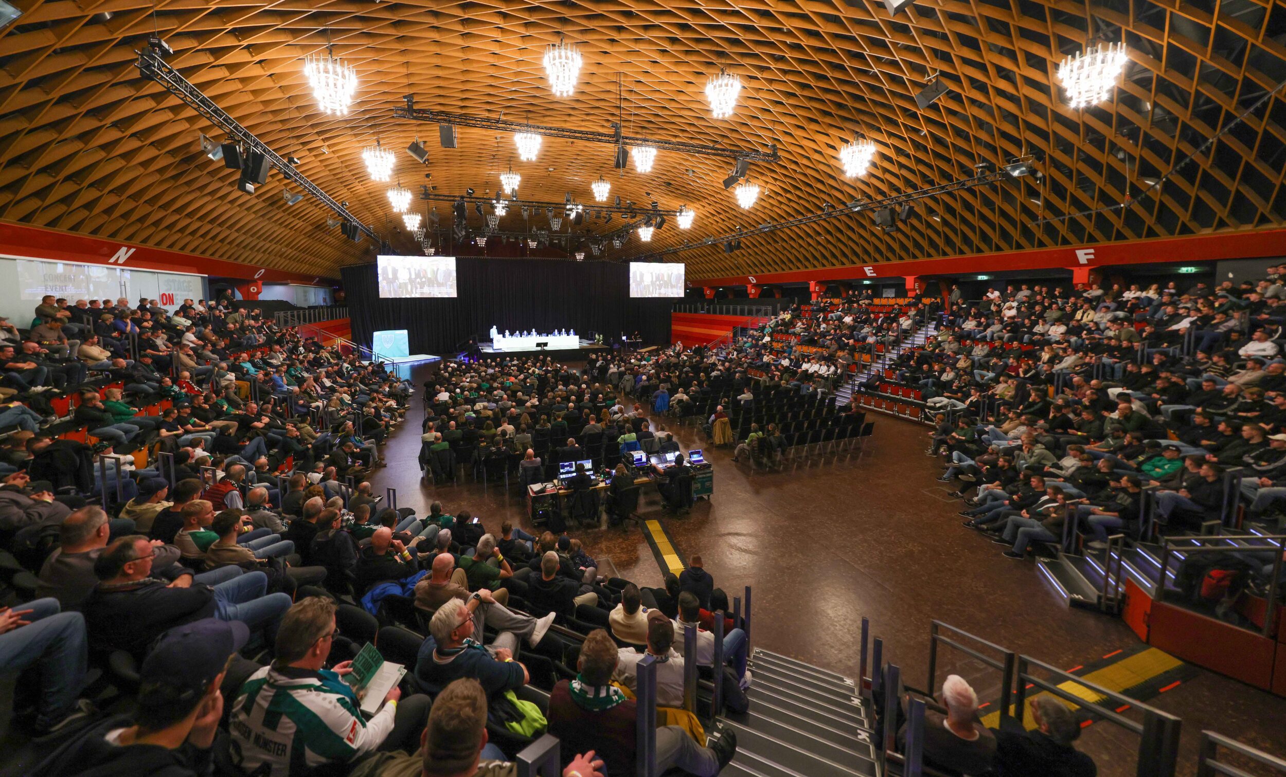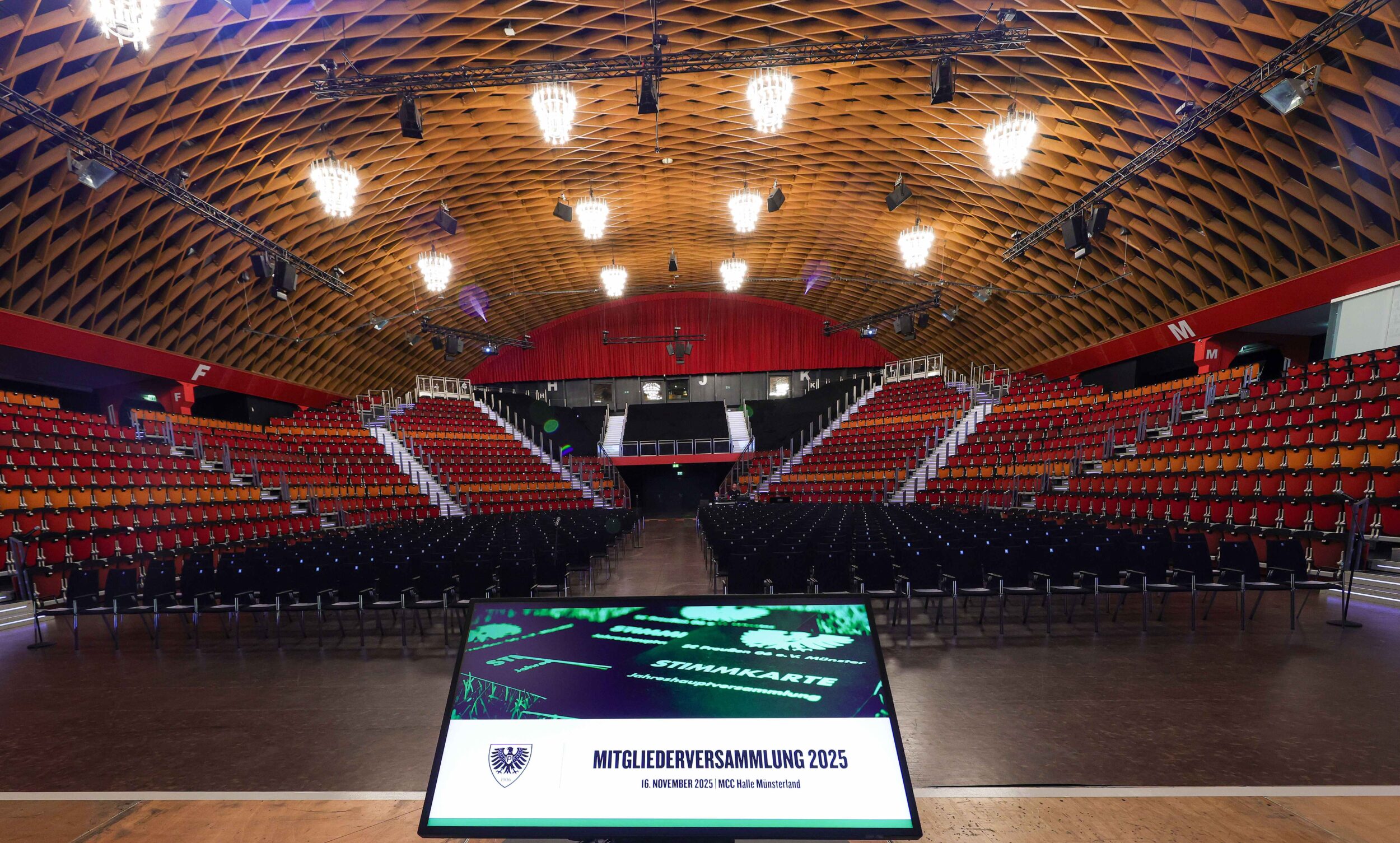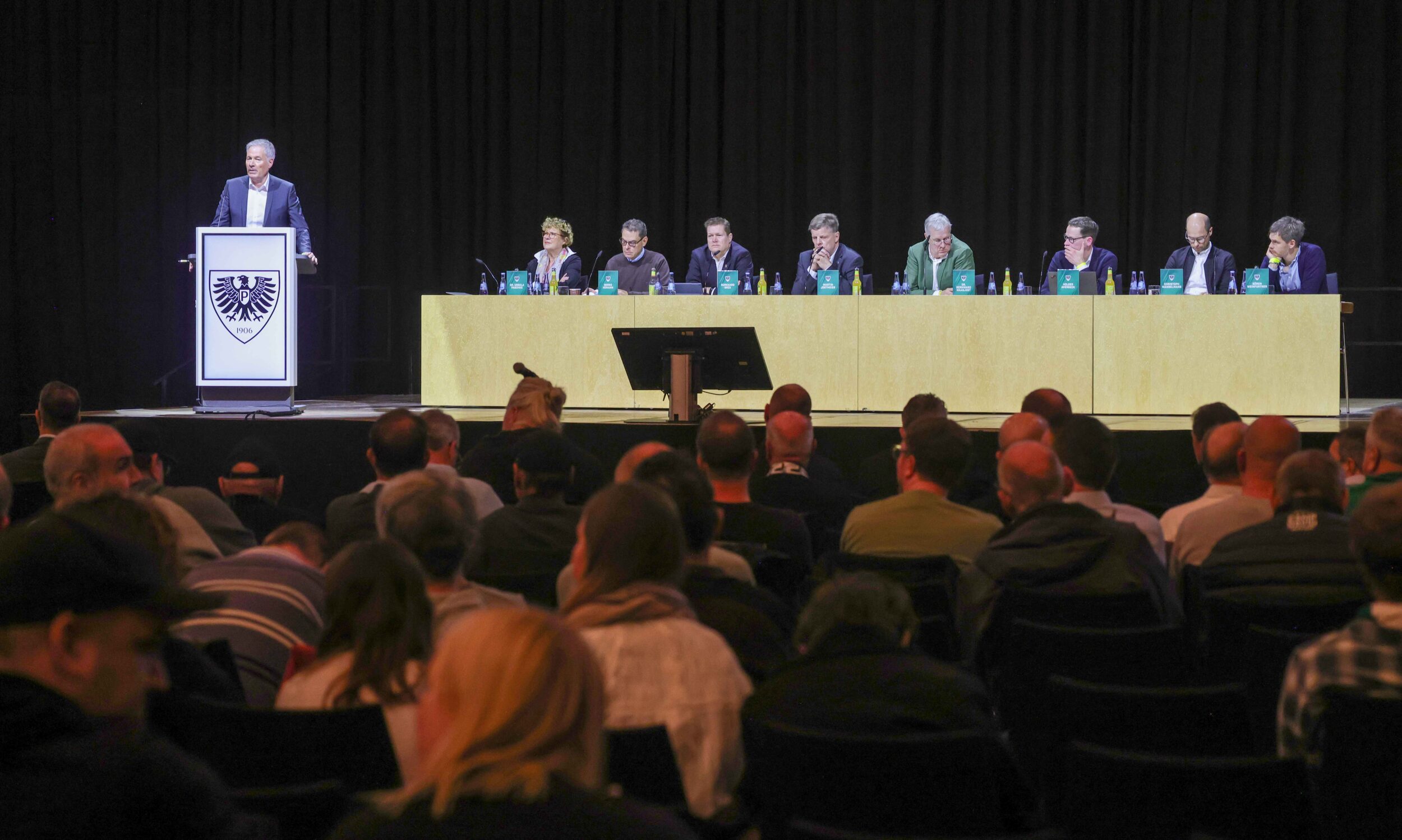 Hat es das schon mal gegeben? 1.011 Mitglieder bei einer Jahreshauptversammlung des SC Preußen 06 e.V. Münster? Es dürfte die Rekordkulisse beim Adlerclub gewesen sein – und dafür bot das Messe und Congress Centrum Halle Münsterland am Sonntag fünfeinhalb Stunden lang den perfekten Rahmen. Die Location stimmte, das Ambiente und die Organisation auch. Viele positive Entwicklungen wurden hervorgehoben, aber auch kritische Töne offen angesprochen. All das führte zu einer zwar langen aber insgesamt wieder harmonischen und fairen Versammlung. Wir haben die Bilder des Tages für euch in einer umfangreichen Galerie zusammengetragen. Viel Spaß beim Kneistern!