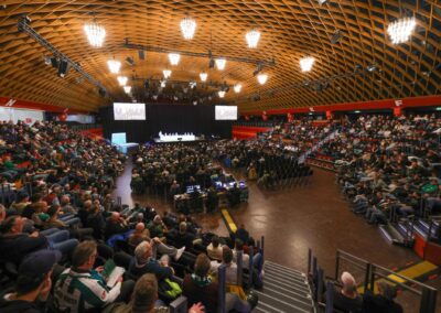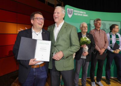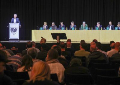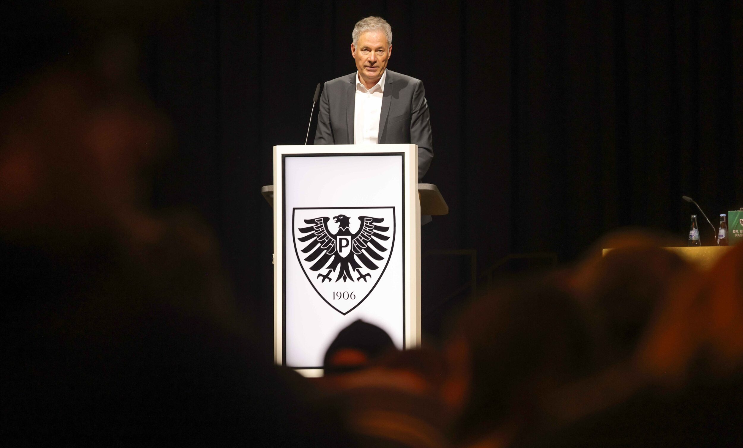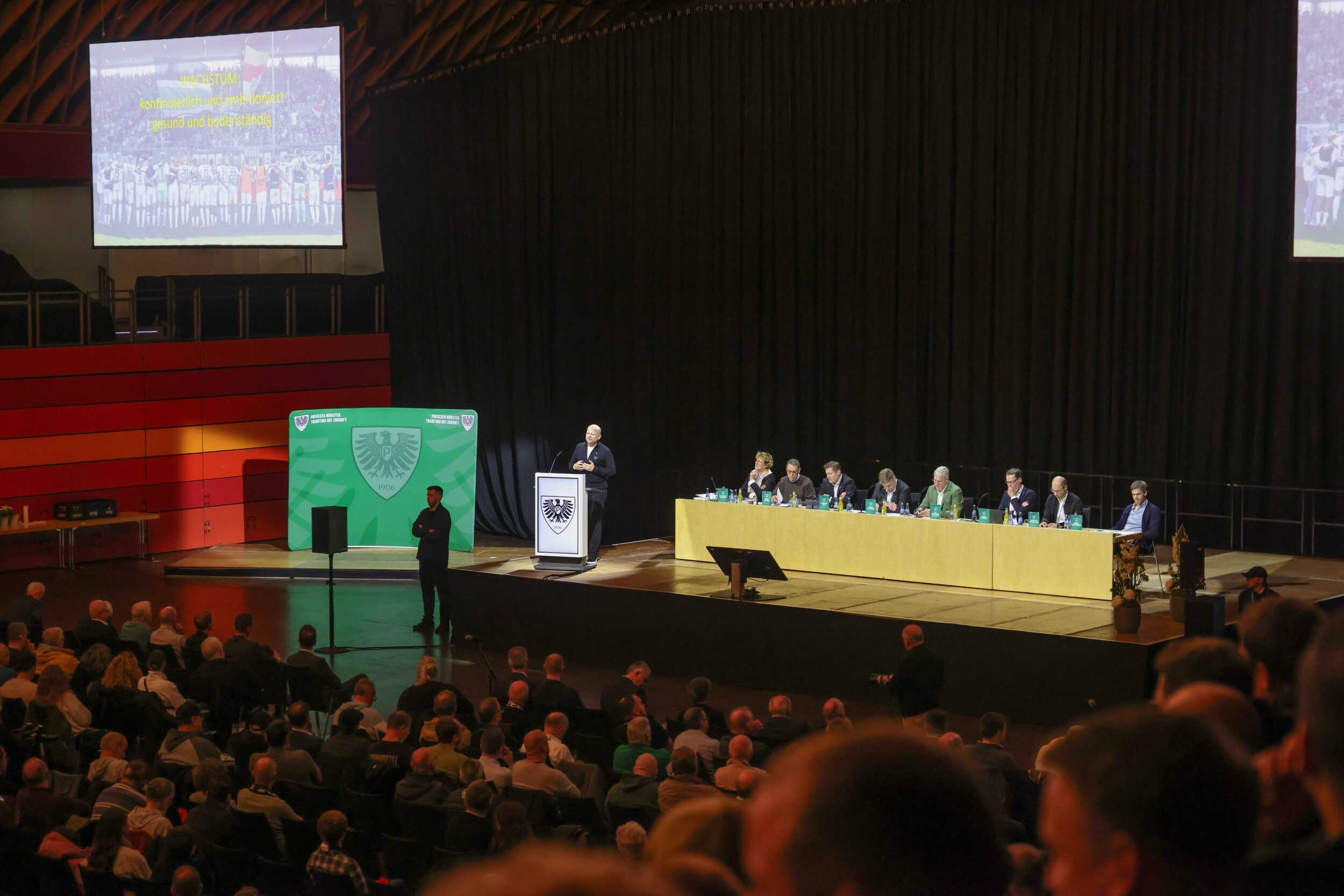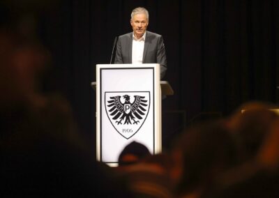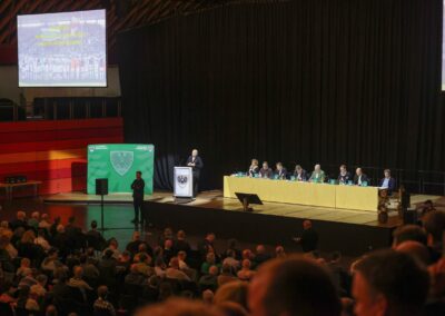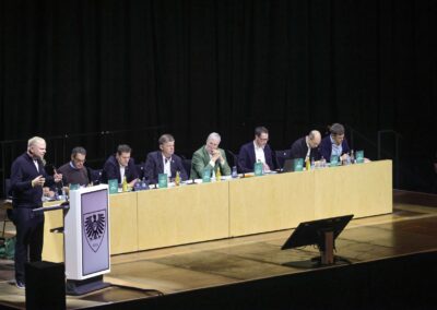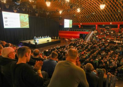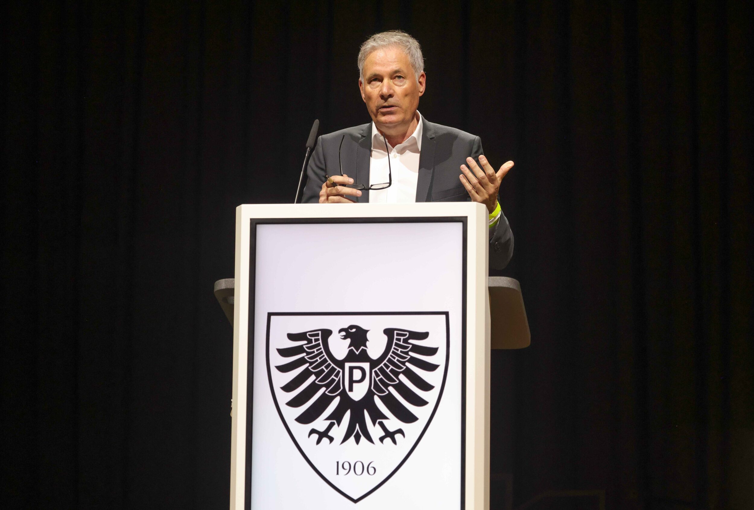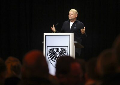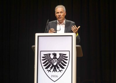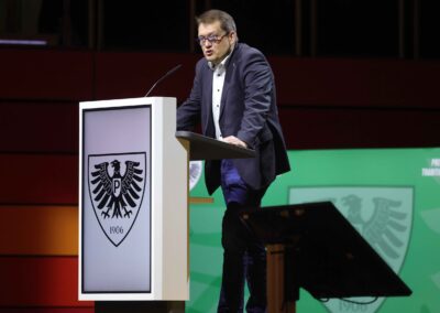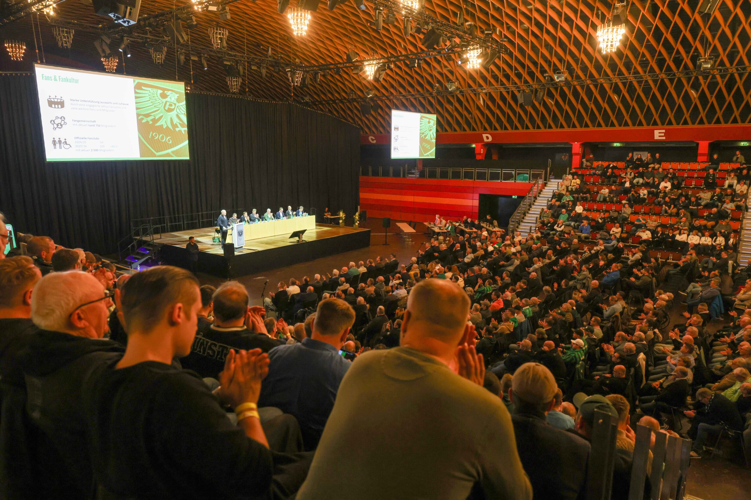 Hat es das schon mal gegeben? 1.011 Mitglieder bei einer Jahreshauptversammlung des SC Preußen 06 e.V. Münster? Es dürfte die Rekordkulisse beim Adlerclub gewesen sein – und dafür bot das Messe und Congress Centrum Halle Münsterland am Sonntag fünfeinhalb Stunden lang den perfekten Rahmen. Die Location stimmte, das Ambiente und die Organisation auch. Viele positive Entwicklungen wurden hervorgehoben, aber auch kritische Töne offen angesprochen. All das führte zu einer zwar langen aber insgesamt wieder harmonischen und fairen Versammlung. Wir haben die Bilder des Tages für euch in einer umfangreichen Galerie zusammengetragen. Viel Spaß beim Kneistern!