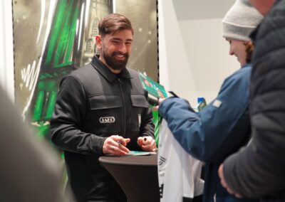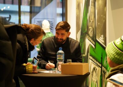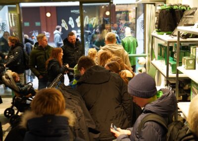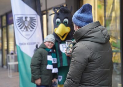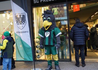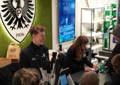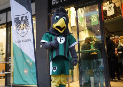 Am Freitag wurde die zweite Etage des Fanshops an der Klemensstraße offiziell eröffnet und lockte über den gesamten Tag zahlreiche Besucher an. Schon eine gute Stunde vor Ladenöffnung warten die ersten Neugierigen vor der Tür, um einen Blick auf die Erweiterung der Ladenfläche zu werfen. Über den gesamten Freitag hinweg tummelten sich schließlich zahlreiche Preußenfans im Laden und nutzten die verlockenden Sonderangebote. Außerdem sorgten die Autogrammstunde mit Malik Batmaz und der Besuch von Maskottchen Fiffi für großen Andrang in der Innenstadt.