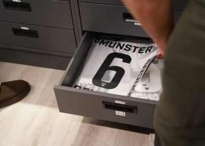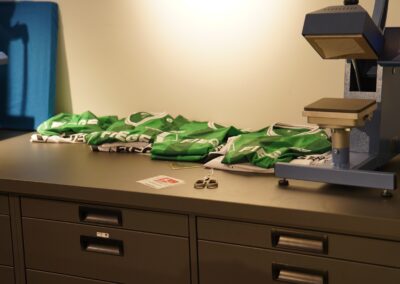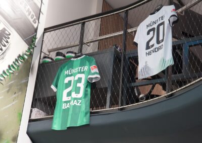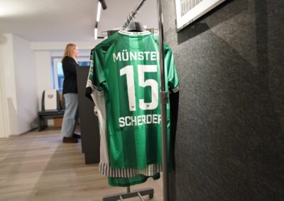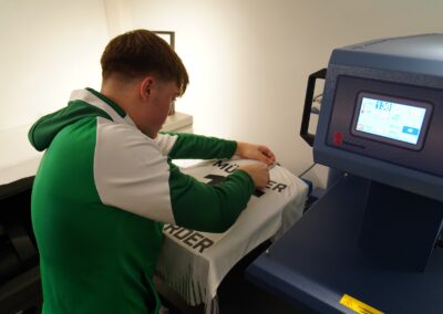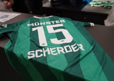 Ob Batista Meier, Scherder, Bouchama oder doch der eigene Name: Die neue Druckmaschine, mit der Trikots nun direkt vor Ort beflockt werden können, bekam bei der offiziellen Eröffnung der oberen Etage nur selten eine Pause.