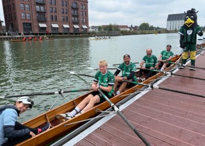 Am vergangenen Samstag wurde der Münsteraner Stadthafen zum Schauplatz eines besonderen Ereignisses: Bei der Benefizregatta „Rudern gegen Krebs“ gingen 68 Teams an den Start, um gemeinsam ein starkes Zeichen für Solidarität und Unterstützung von Menschen mit einer Krebserkrankung zu setzen. Die Veranstaltung stand unter der Schirmherrschaft von Dr. Simone Gurlit, Präsidentin des Landesamtes für Gesundheit und Arbeitsschutz NRW. Ausrichter waren die Stiftung Leben mit Krebs, das St. Franziskus-Hospital Münster und der Ruderverein Münster von 1882 e.V. Auch der SC Preußen Münster ging mit einer vierköpfigen Bootsbesatzung bestehend aus Geschäftsführer Philipp Deipenbrock, e.V.-Teamleiter Albrecht Dörries sowie den Mitarbeitern Claas Laukötter und Felix Lüppens stilecht im Heimtrikot an den Start.