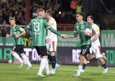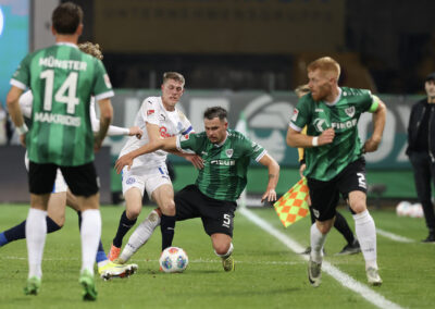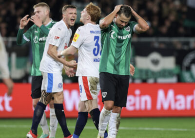 Entsprechend stolz war Trainer Alexander Ende nach der Partie: „Es war ein Spiel voller Geschichten – mit einer tragischen zu Beginn. Unsere Ausfallliste ist schon lang, jetzt kommt dieser erneute Rückschlag für Malik hinzu. Die zehn Minuten nach der Umstellung waren nicht gut, wir haben die Tiefenlaufwege der Kieler nicht gut aufgenommen. Nach dem Moment war es wichtig, dass wir uns angepasst haben. Das Eins-gegen-Eins-Verteidigen über dem ganzen Platz war mit viel Risiko verbunden, hat uns in der Phase aber gutgetan. In der zweiten Halbzeit war es Kampf und Energie pur. Wir machen den Ausgleich, gehen in Führung, laufen zugleich auf der letzten Rille. Am Ende war es sicherlich nicht der schönste Auftritt von uns, aber nach dem wir in dieser Saison schon öfter diesen einen Magic Moment verpasst haben, ist jetzt die Waage jetzt endlich in unsere Richtung ausgeschlagen.“