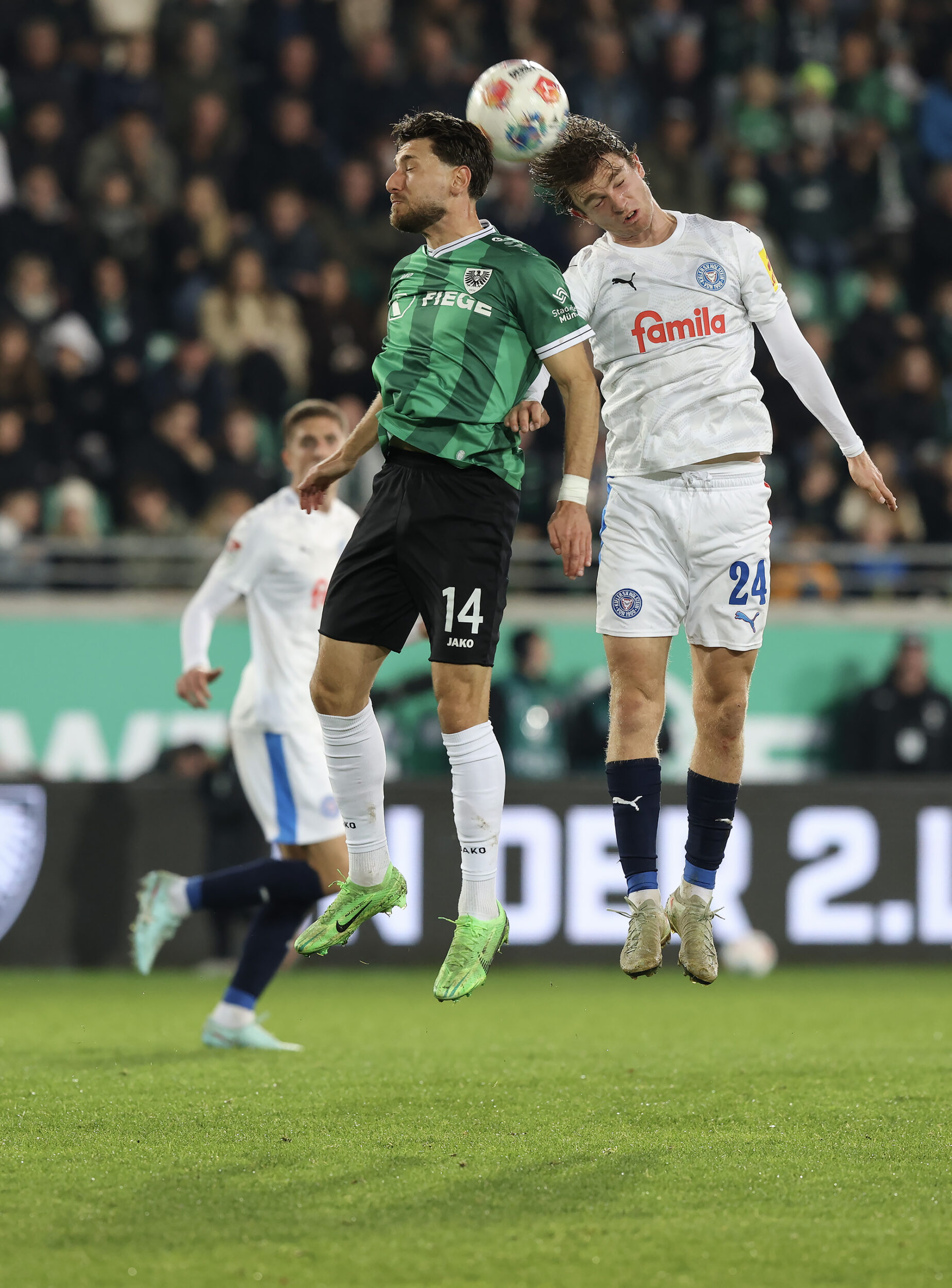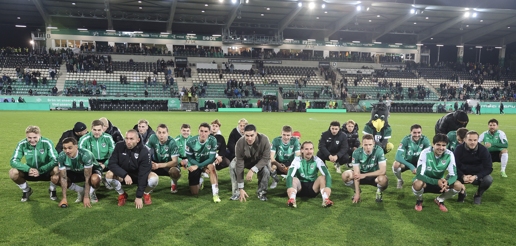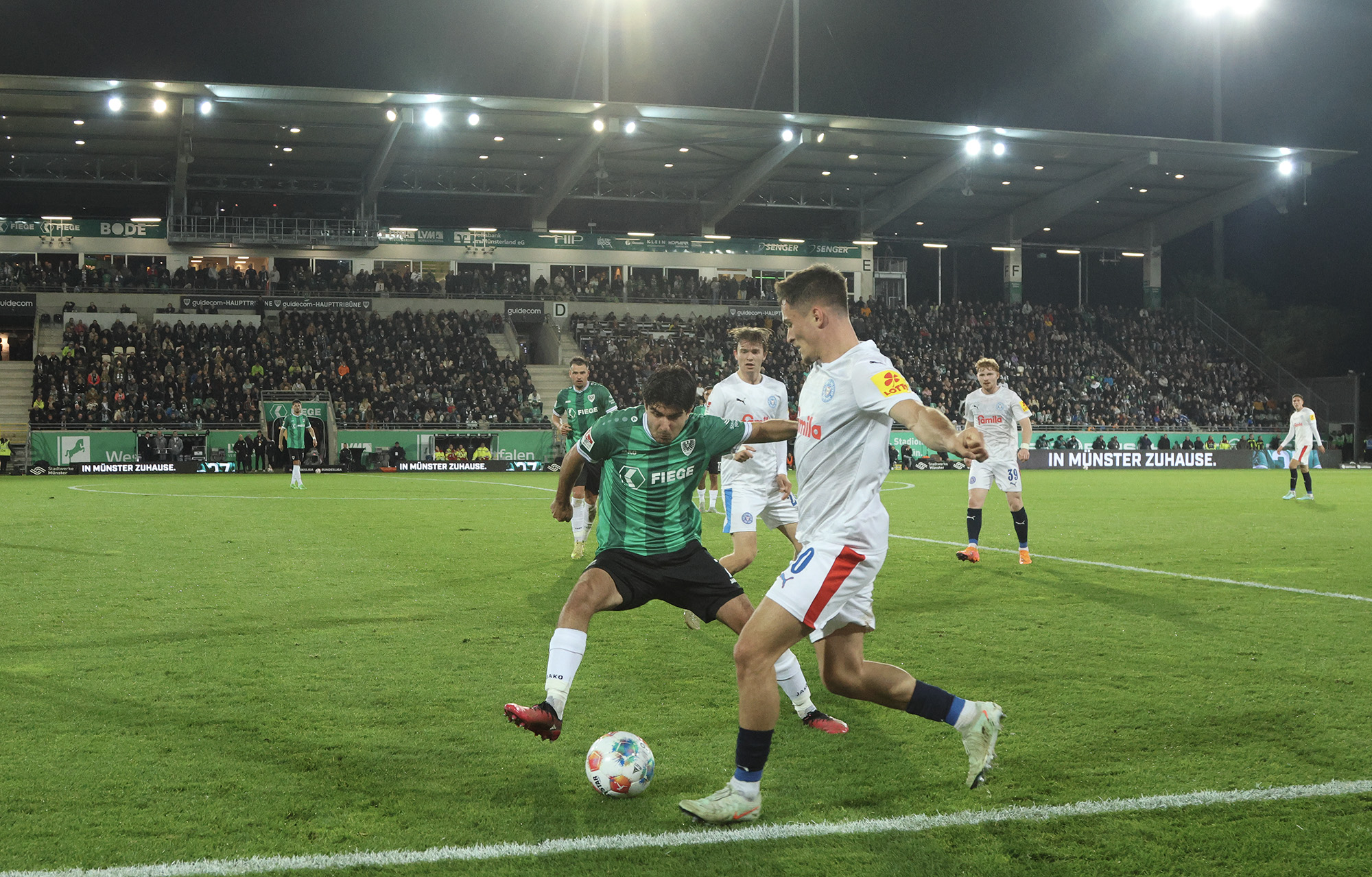 Der SC Preußen Münster hat am Freitagabend im ausverkauften LVM-Preußenstadion Holstein Kiel mit 2:1 besiegt – und dabei erneut vor heimischem Publikum große Moral bewiesen. Trotz früher Rückschläge und einer intensiven Schlussphase erkämpften sich die Adlerträger die drei wichtigen Punkte. Eine überragende Antwort auf die vielen Nachrichten der letzten Wochen und aller Widerstände, die auch in den 90 Minuten bezwungen werden mussten.