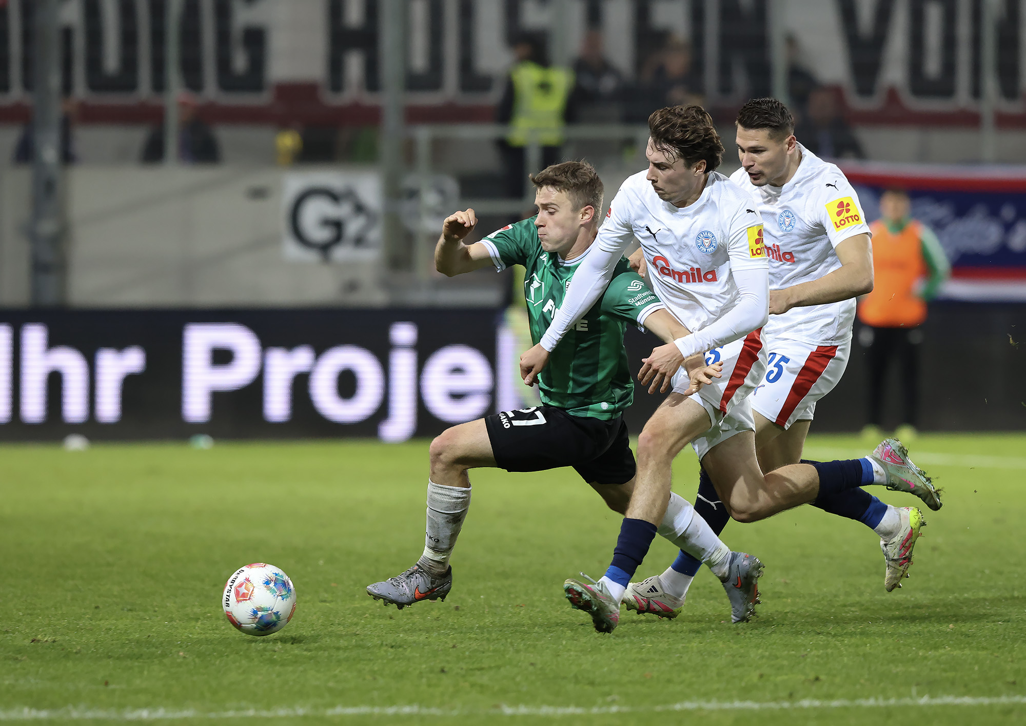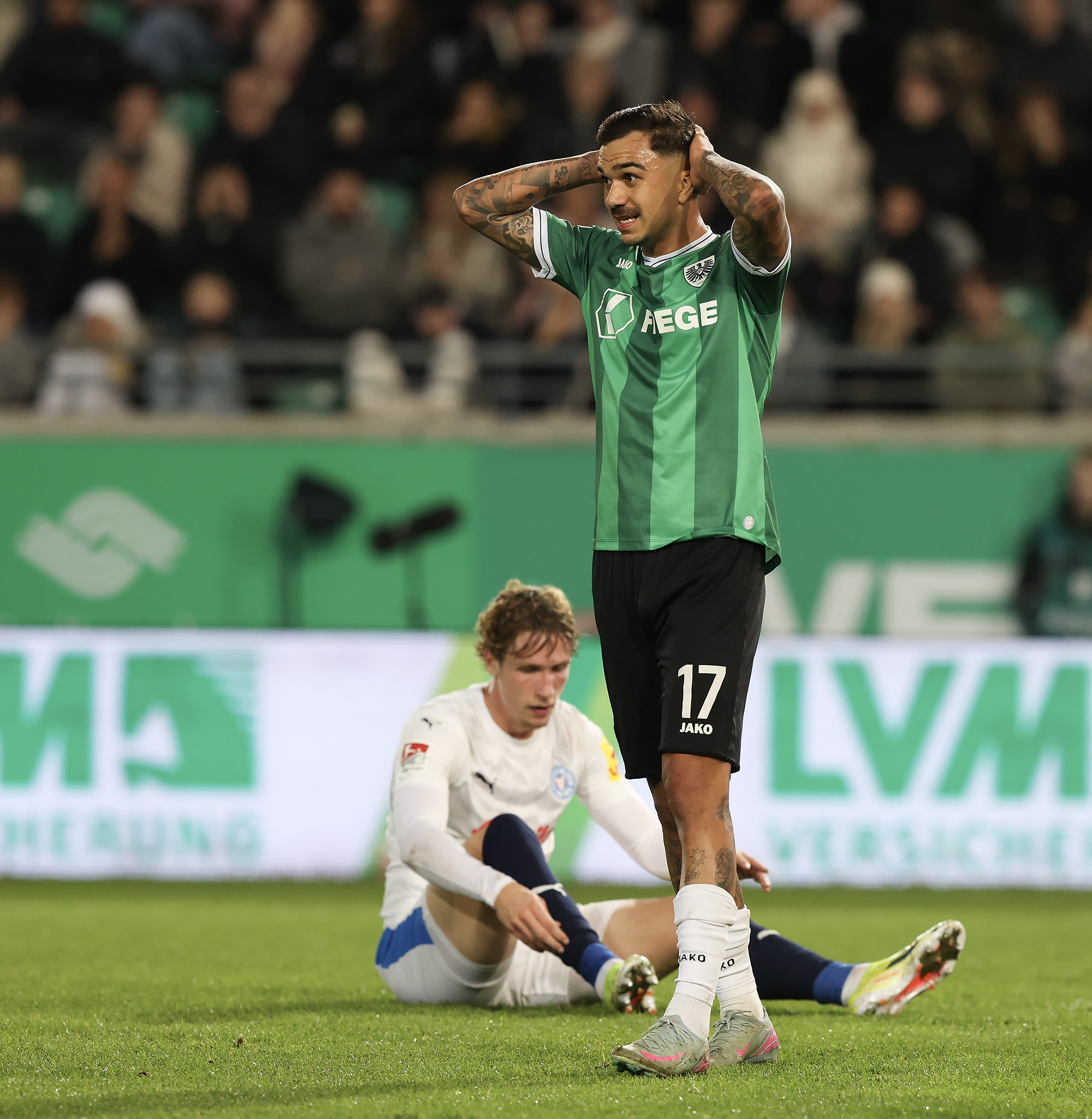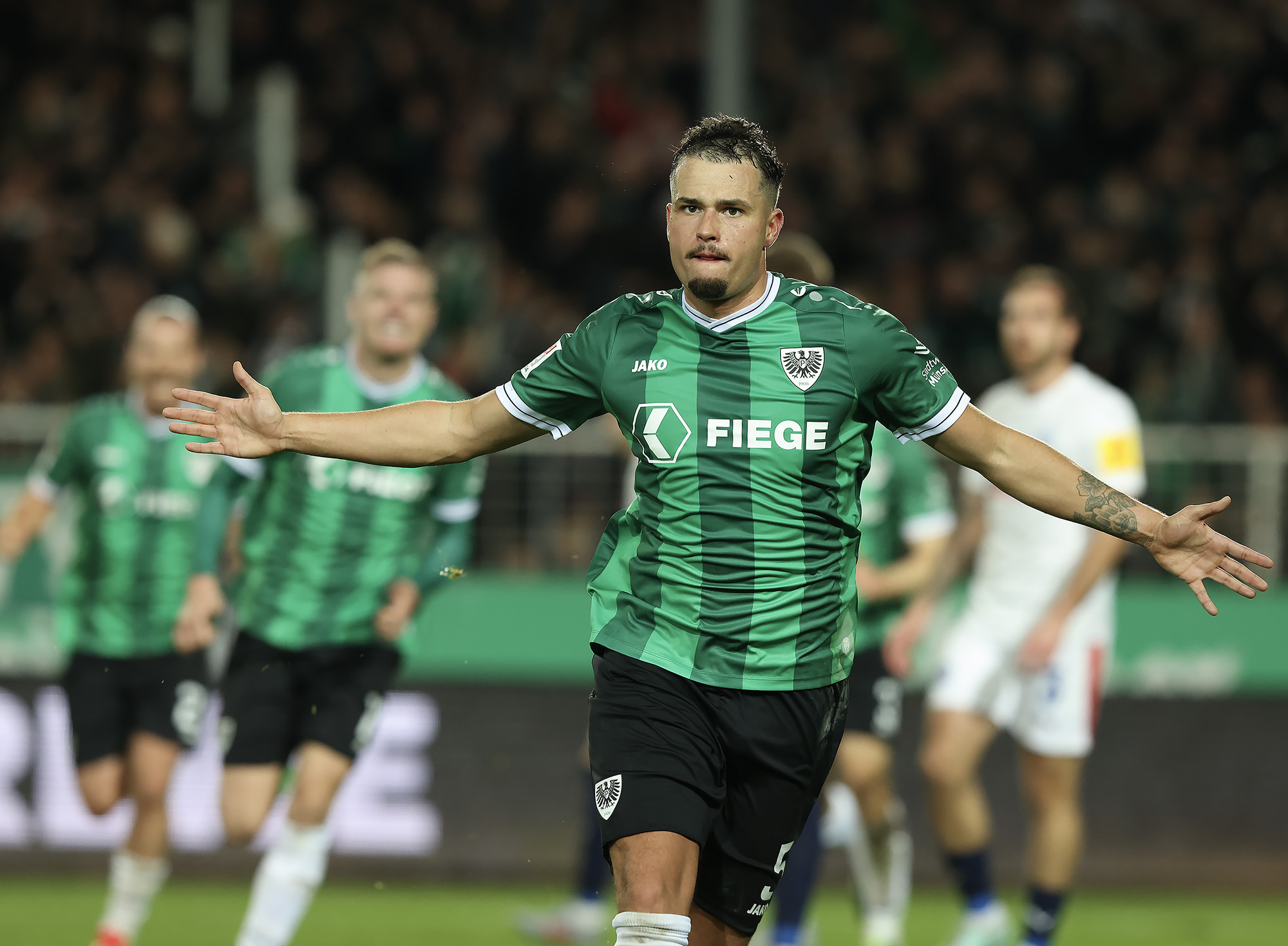 Der SC Preußen Münster hat am Freitagabend im ausverkauften LVM-Preußenstadion Holstein Kiel mit 2:1 besiegt – und dabei erneut vor heimischem Publikum große Moral bewiesen. Trotz früher Rückschläge und einer intensiven Schlussphase erkämpften sich die Adlerträger die drei wichtigen Punkte. Eine überragende Antwort auf die vielen Nachrichten der letzten Wochen und aller Widerstände, die auch in den 90 Minuten bezwungen werden mussten.