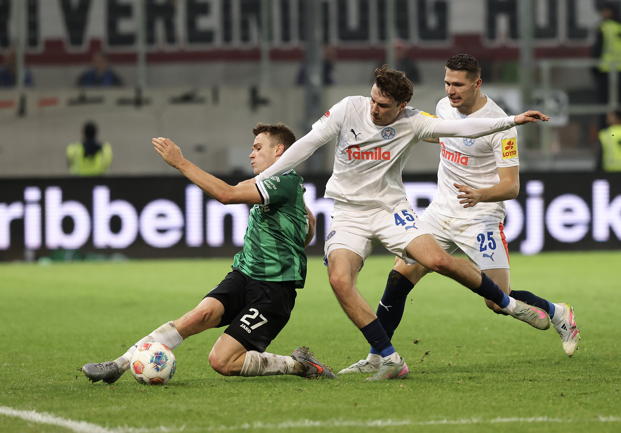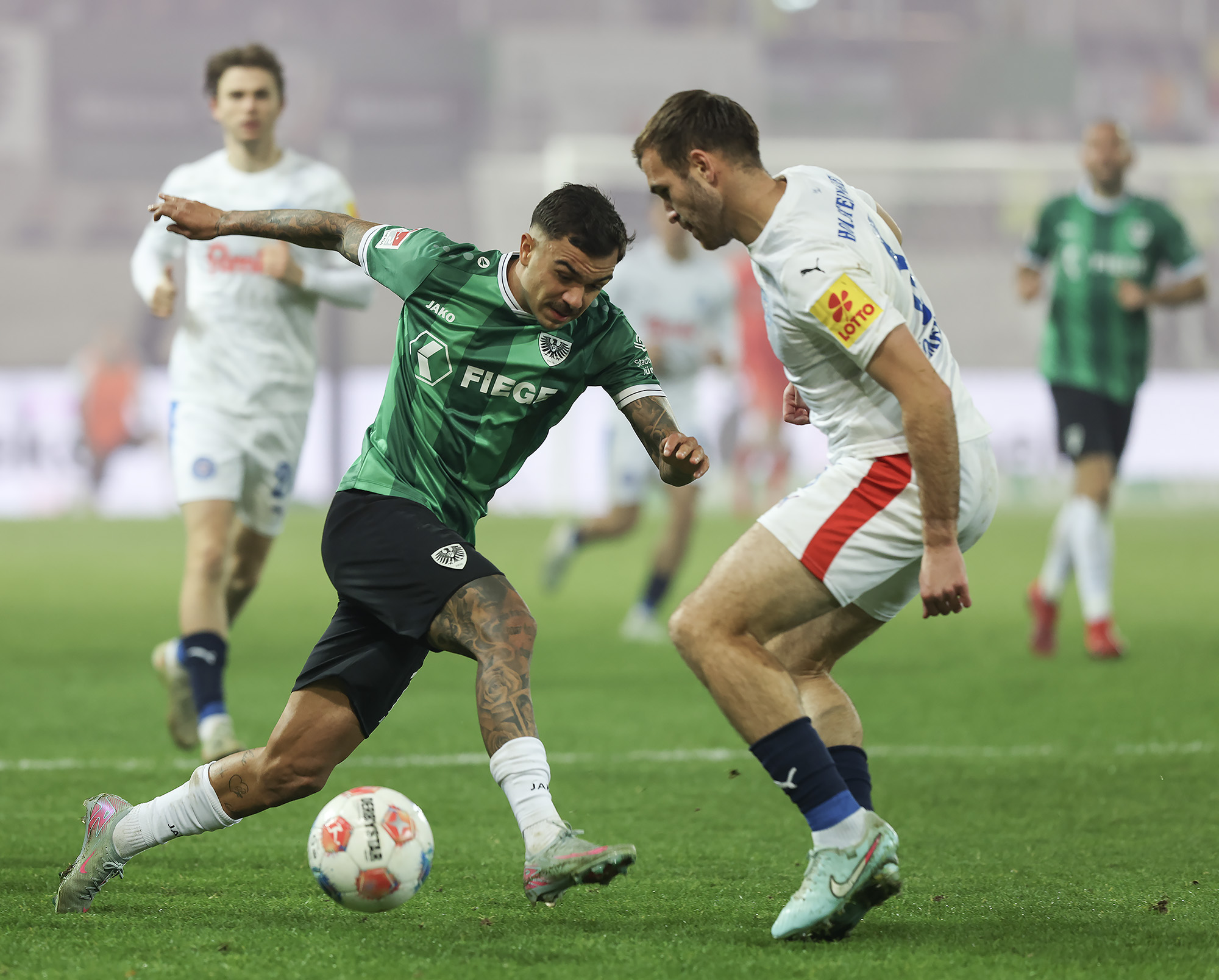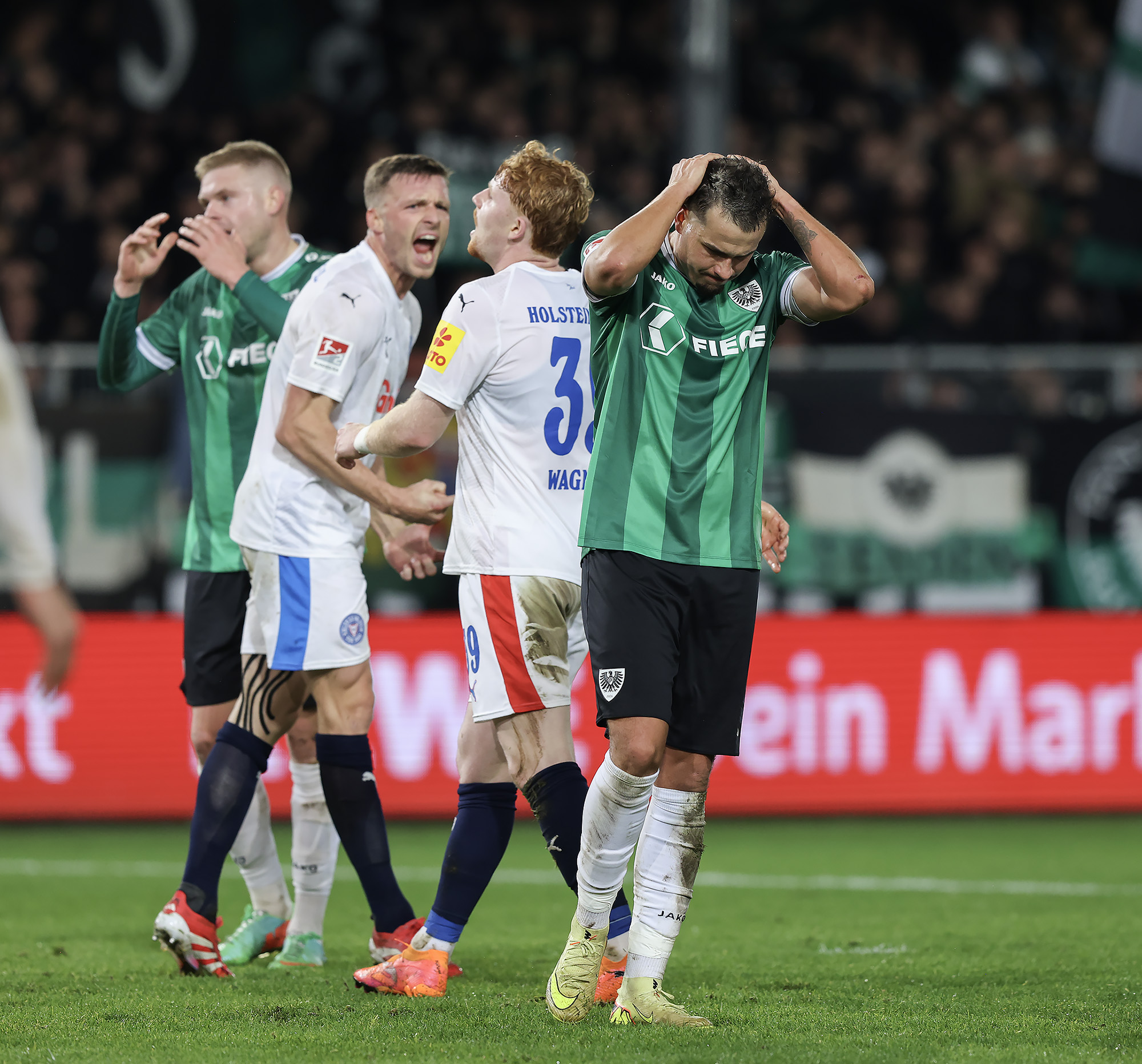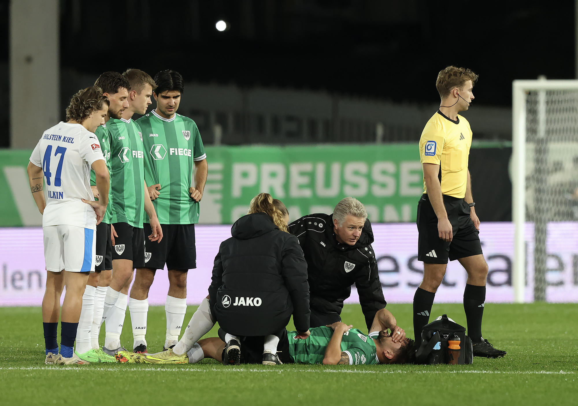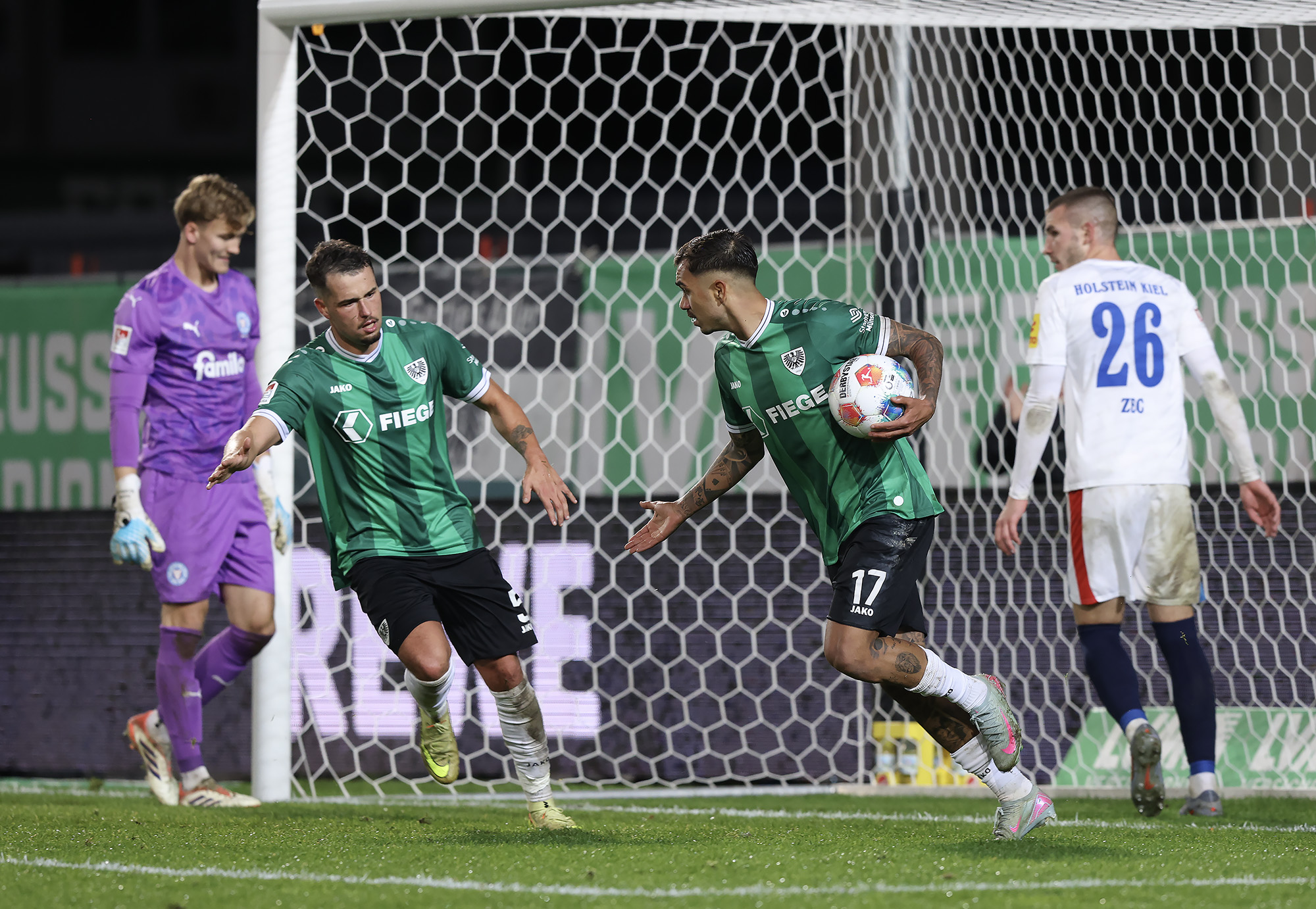 Entsprechend stolz war Trainer Alexander Ende nach der Partie: „Es war ein Spiel voller Geschichten – mit einer tragischen zu Beginn. Unsere Ausfallliste ist schon lang, jetzt kommt dieser erneute Rückschlag für Malik hinzu. Die zehn Minuten nach der Umstellung waren nicht gut, wir haben die Tiefenlaufwege der Kieler nicht gut aufgenommen. Nach dem Moment war es wichtig, dass wir uns angepasst haben. Das Eins-gegen-Eins-Verteidigen über dem ganzen Platz war mit viel Risiko verbunden, hat uns in der Phase aber gutgetan. In der zweiten Halbzeit war es Kampf und Energie pur. Wir machen den Ausgleich, gehen in Führung, laufen zugleich auf der letzten Rille. Am Ende war es sicherlich nicht der schönste Auftritt von uns, aber nach dem wir in dieser Saison schon öfter diesen einen Magic Moment verpasst haben, ist jetzt die Waage jetzt endlich in unsere Richtung ausgeschlagen.“