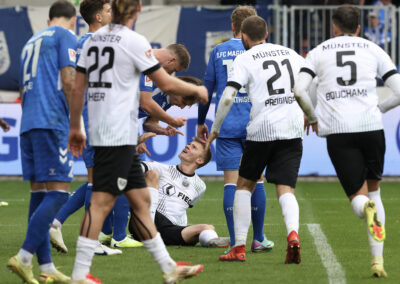 Mit großen Verletzungssorgen reisten die Adlerträger zum Zweitliga-Schlusslicht aus Magdeburg; viel zu lang ist die Ausfallliste, um sie hier aufzuzählen. Die Ersatzbank der Schwarz-Weiß-Grünen war gespickt mit U23-Akteuren. Angemerkt hat man es den Münsteranern zunächst nicht, die im ersten Durchgang in allen Statistiken die Nase vorn hatten und auch die deutlich besseren Torchancen auf ihrer Seite hatten. Allein die mangelnde Chancenverwertung verhinderte eine verdiente Halbzeitführung in der Fremde.