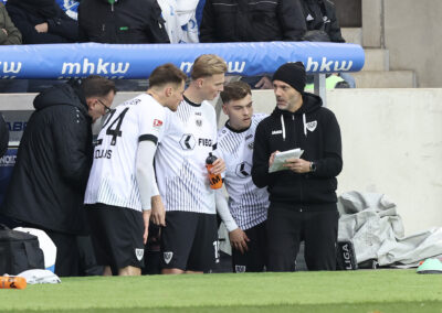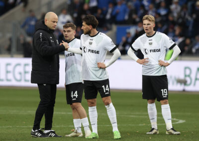 Trainer Alexander Ende nach dem Spiel: „Wir sind sehr mutig aufgetreten, sind nicht von unserer Linie und unserer Überzeugung abgerückt. Wir haben als Gruppe ein sehr gutes Spiel gemacht, unsere Momente, die da waren, aber nicht genutzt. Trotzdem muss ich der Mannschaft ein Kompliment machen, die in einer besonderen Situation eine gute Antwort gegeben hat.“