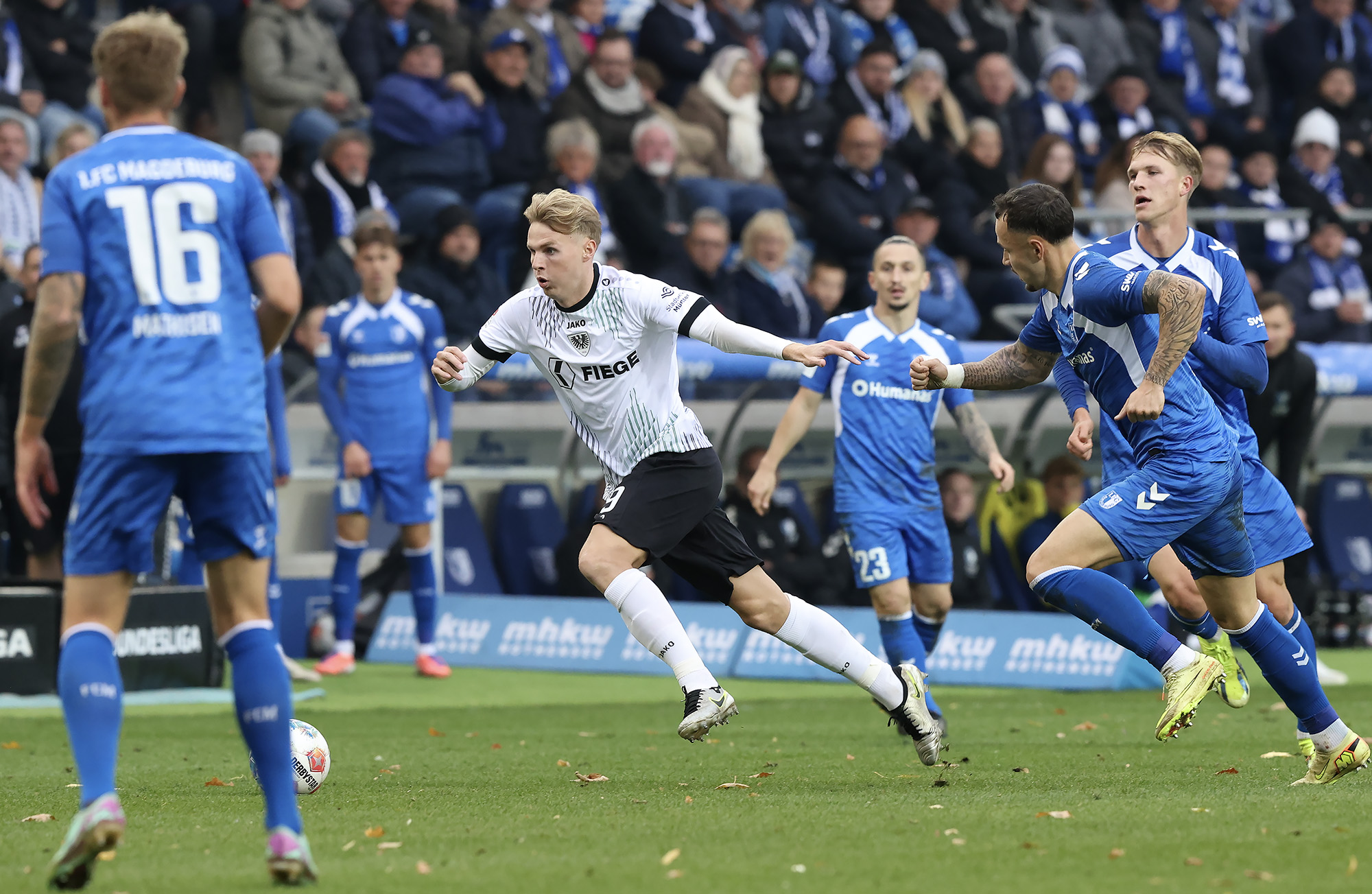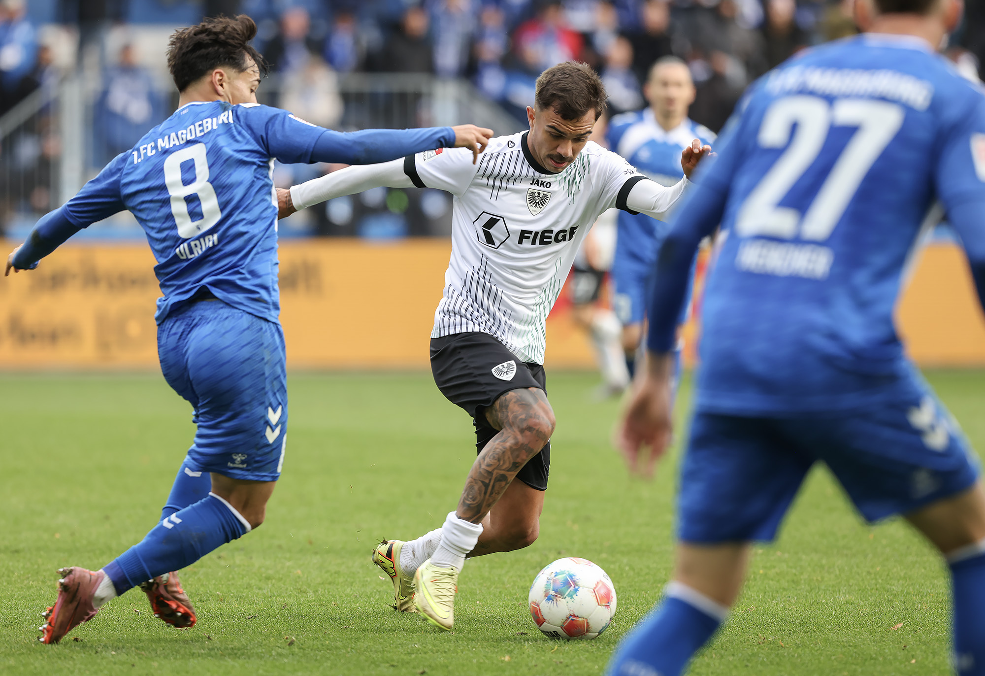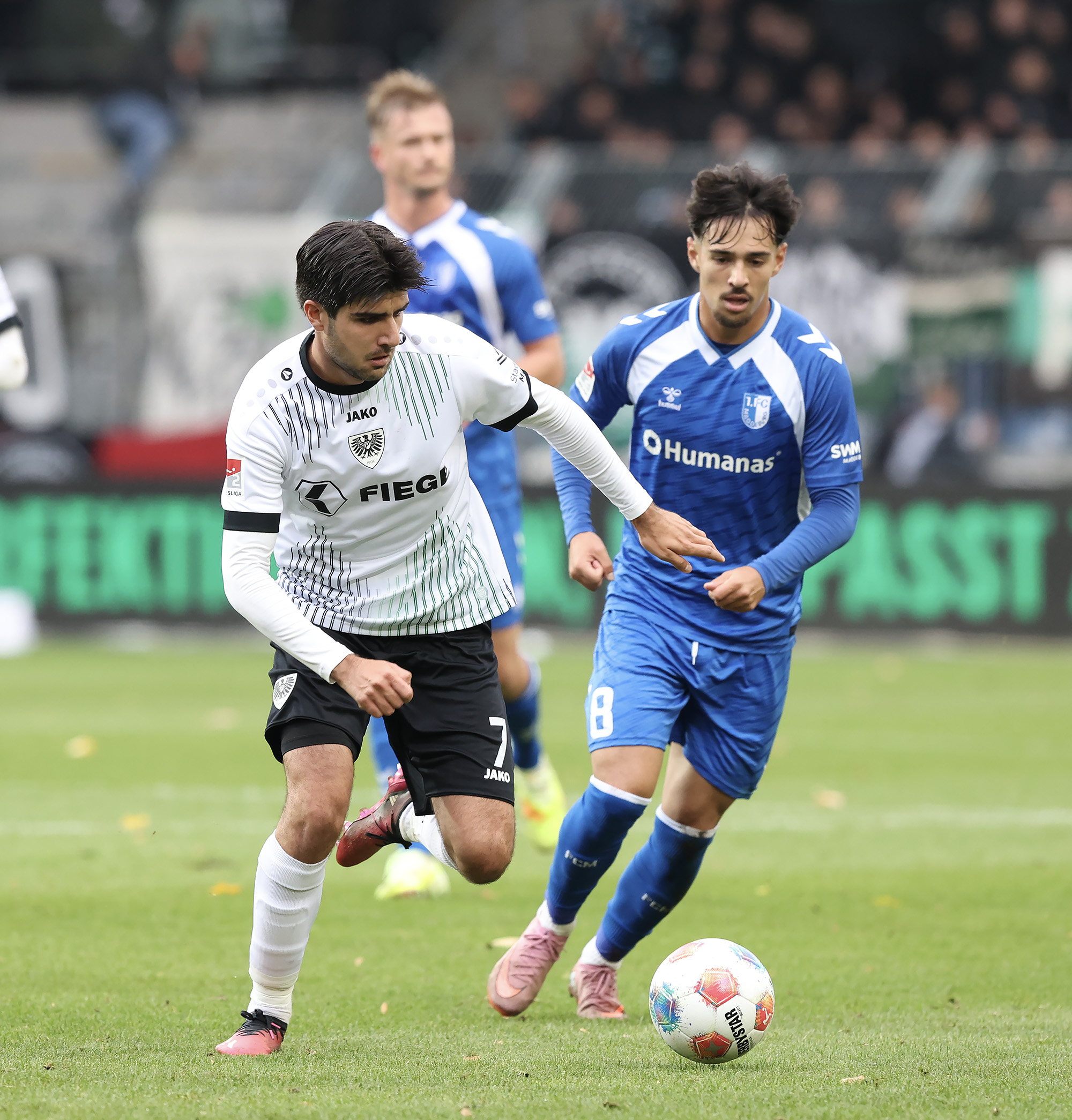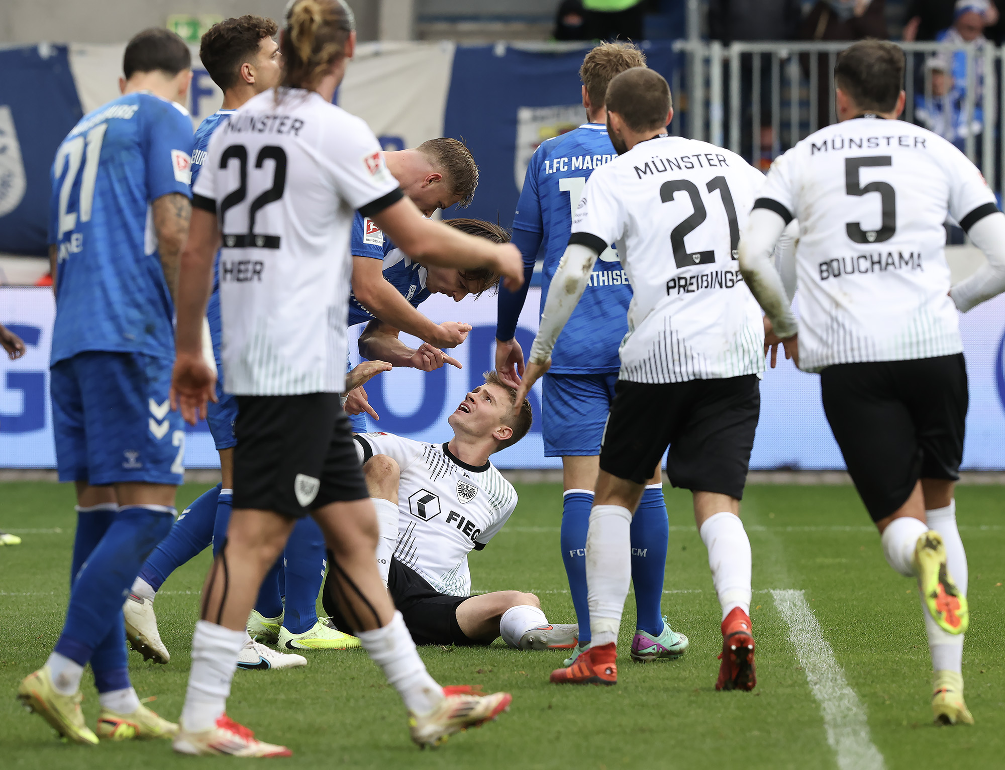 Mit großen Verletzungssorgen reisten die Adlerträger zum Zweitliga-Schlusslicht aus Magdeburg; viel zu lang ist die Ausfallliste, um sie hier aufzuzählen. Die Ersatzbank der Schwarz-Weiß-Grünen war gespickt mit U23-Akteuren. Angemerkt hat man es den Münsteranern zunächst nicht, die im ersten Durchgang in allen Statistiken die Nase vorn hatten und auch die deutlich besseren Torchancen auf ihrer Seite hatten. Allein die mangelnde Chancenverwertung verhinderte eine verdiente Halbzeitführung in der Fremde.