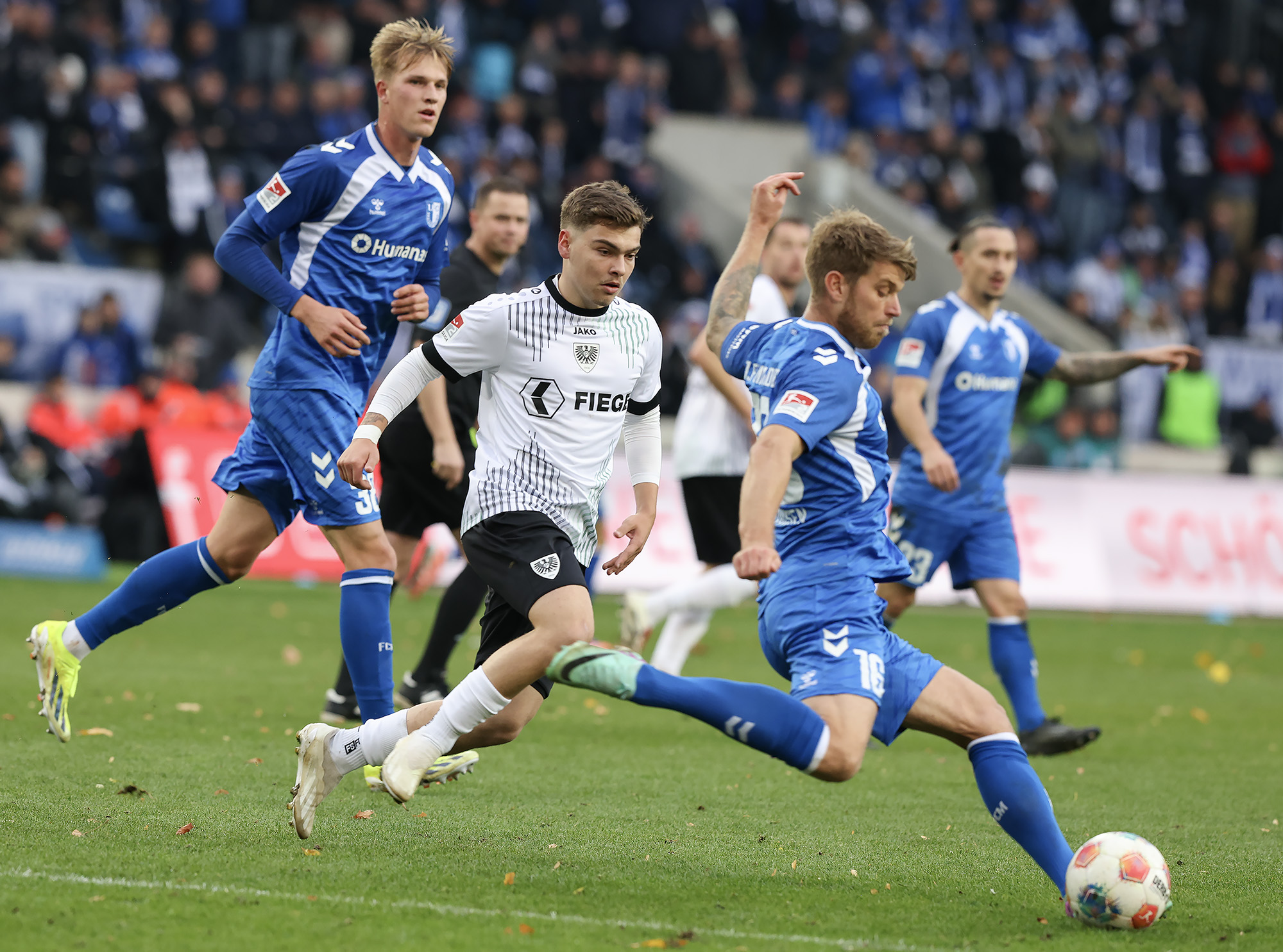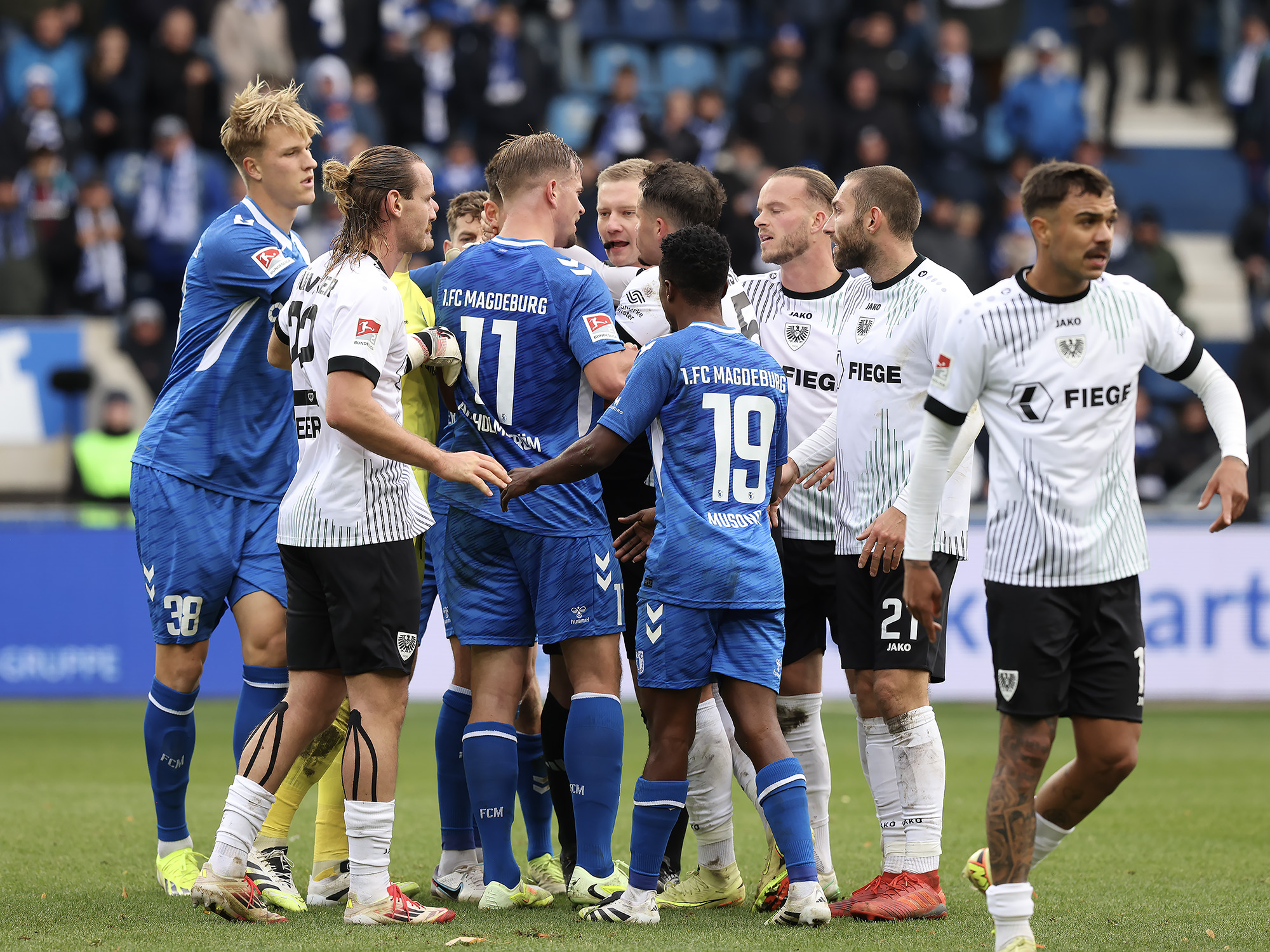 Im zweiten Durchgang wurden die Gastgeber dann zunehmend das aktivere Team und während die Adlerträger kaum noch in die gefährliche Zone kamen, sorgte der FCM immer häufiger für Unruhe rund um den Sechzehner der Preußen. Eine Viertelstunde vor Schluss gingen die Magdeburger dann durch einen Elfer in Führung, nachdem Malik Batmaz seinen Gegenspieler regelwidrig zu Fall brachte. Der eingewechselte Maximilian Breunig traf nach 524 torlosen Minuten für die Blau-Weißen. Den Schlusspunkt in der Nachspielzeit setzte dann der ebenfalls eingewechselte Rayan Ghrieb.