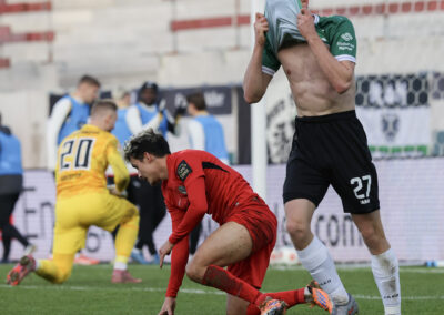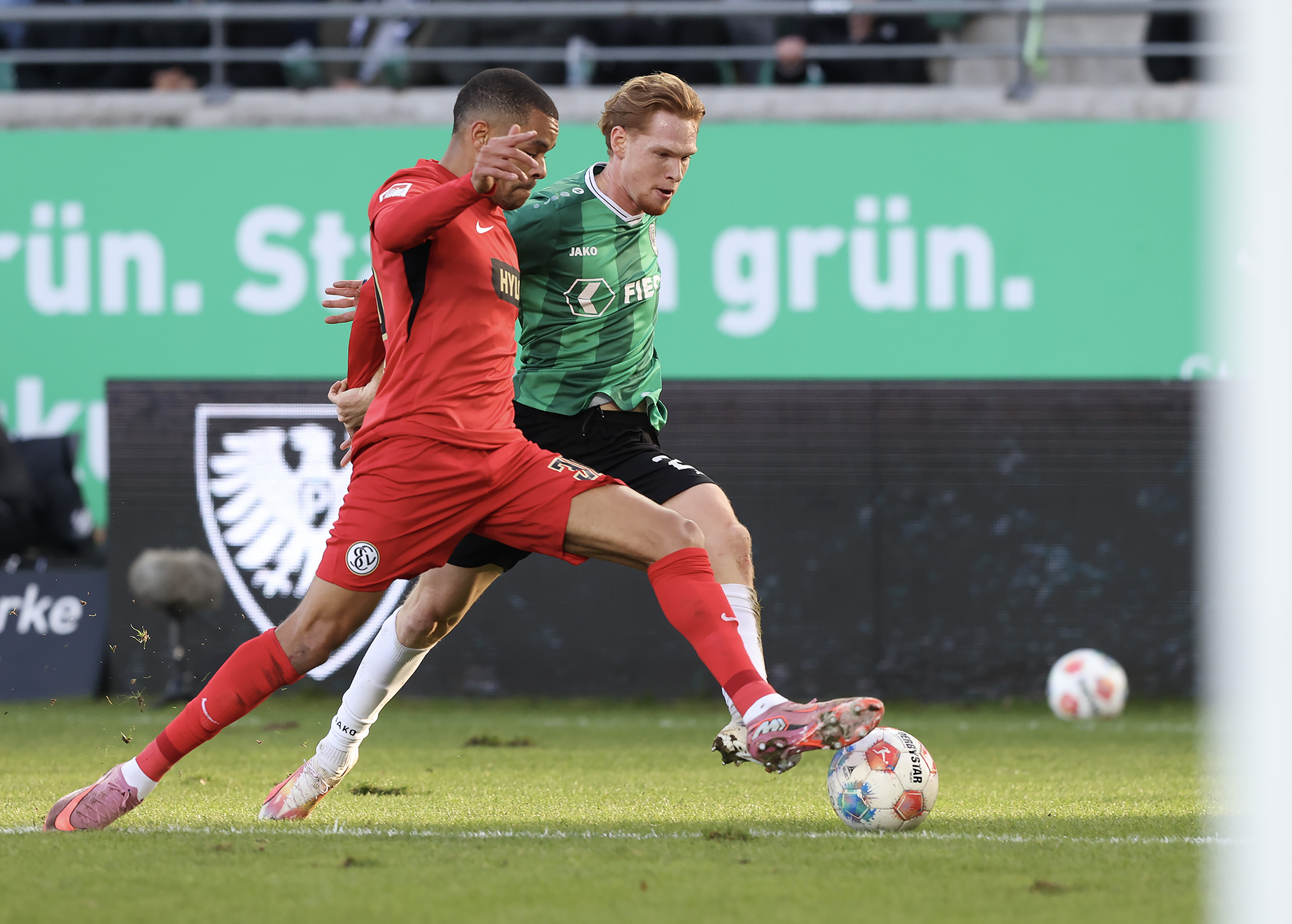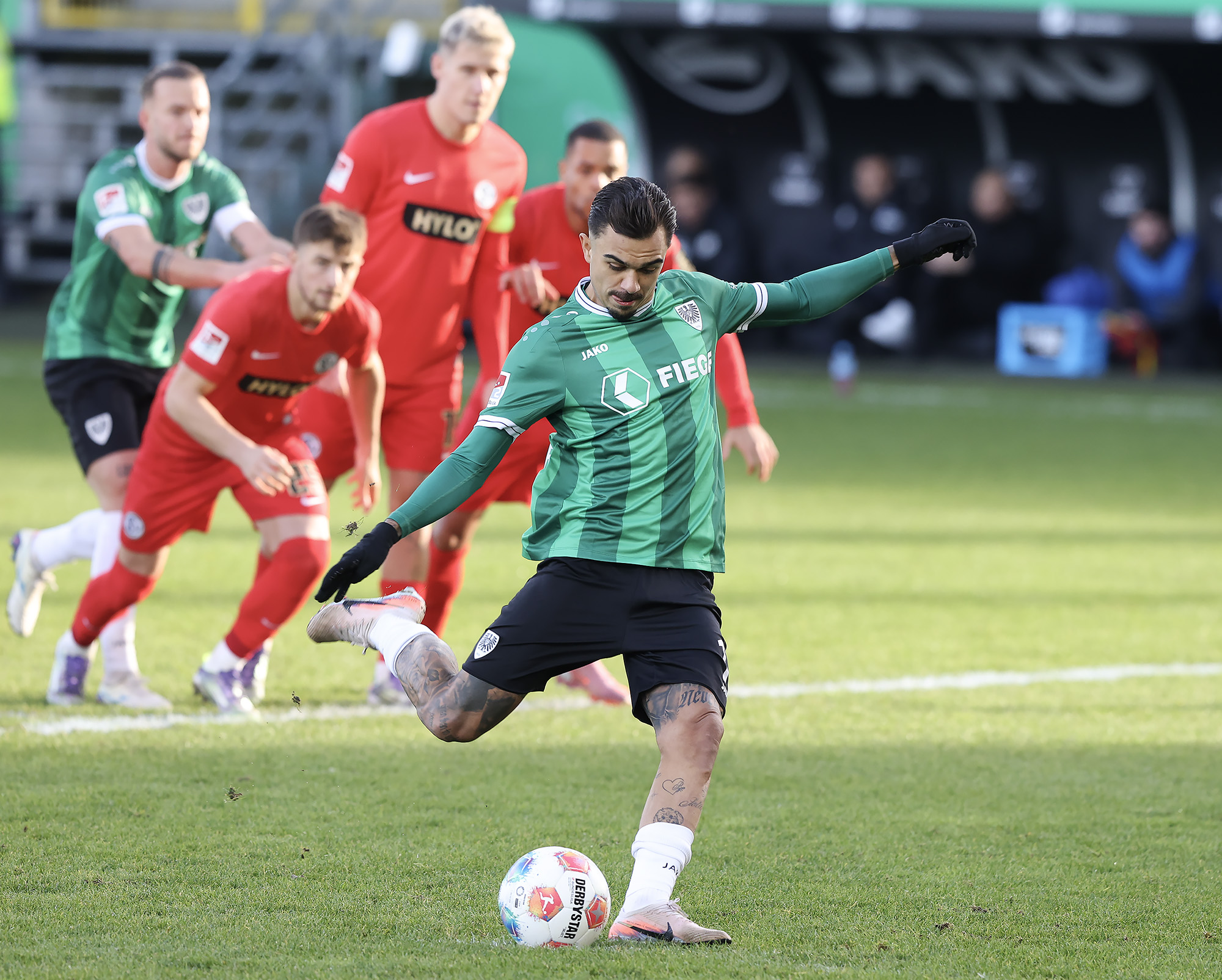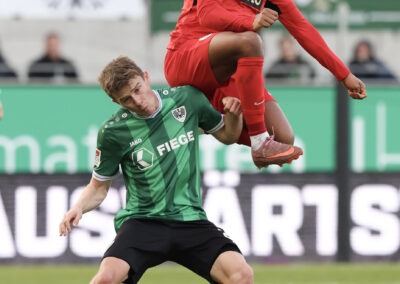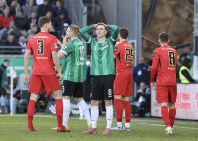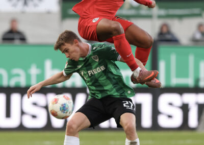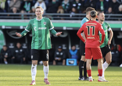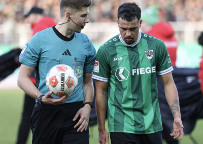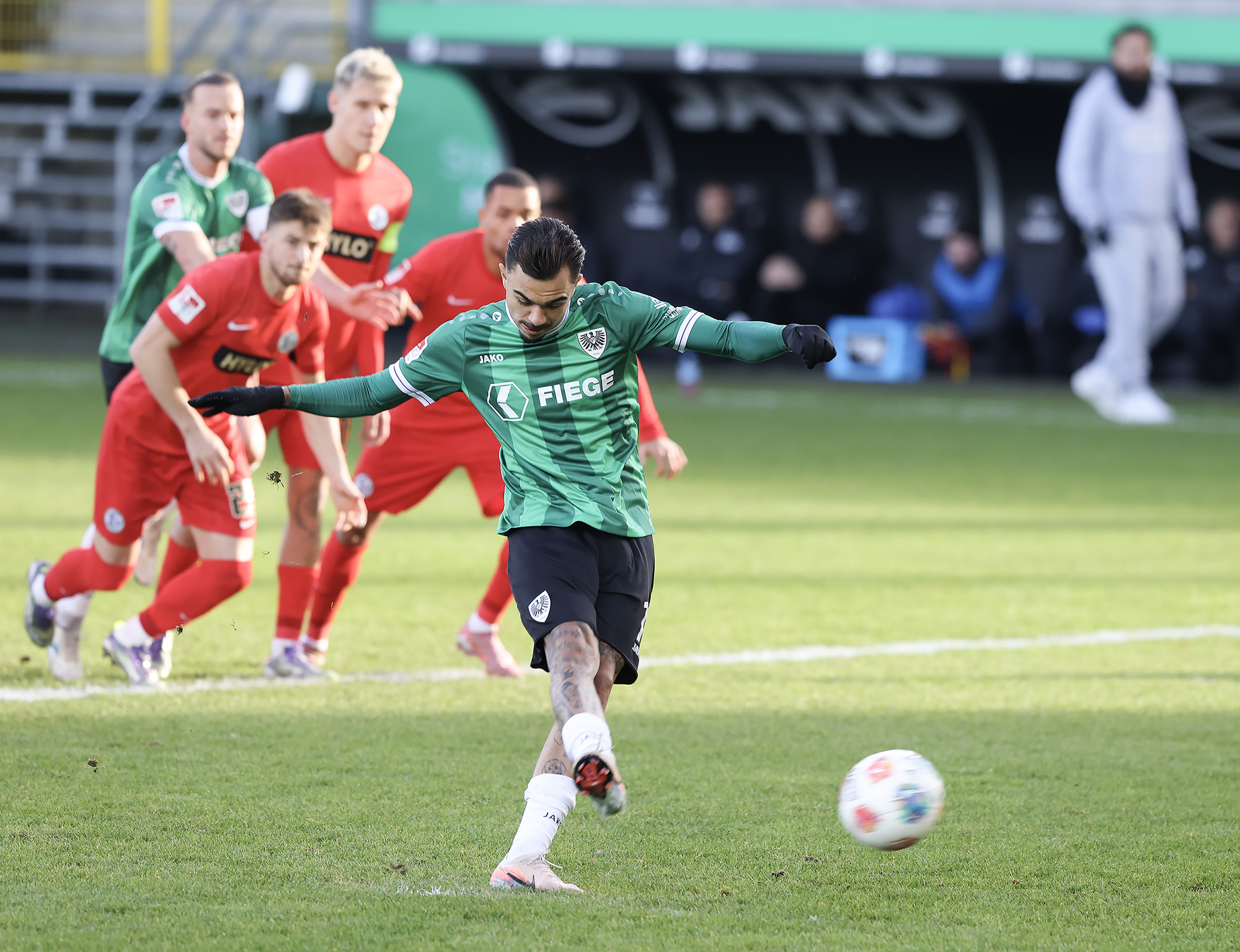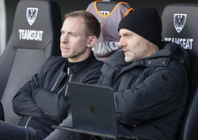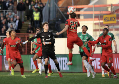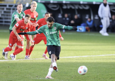 Weil Hendrix und Benger auch mit ihren Volleyabschlüssen das 1:0 verpassten (26.), kam es, wie es vermeintlich kommen musste: Der zuvor gefoulte Younes Ebnoutalib verwandelte vom Punkt zur Gästeführung (34.) und drehte den Spielverlauf damit völlig auf den Kopf – auch wenn ebenjener Ebnoutalib sich bereits wenige Minuten zuvor dem Tor gefährlich angenähert hatte (29.). Die Adlerträger zeigten sich davon unbeeindruckt, ließen wenig später aber auch die nächste Großchance durch Yassine Bouchama (35.) liegen, womit es trotz 7:3 Torabschlüssen zugunsten der Preußen mit einem 0:1 in die Pause ging.