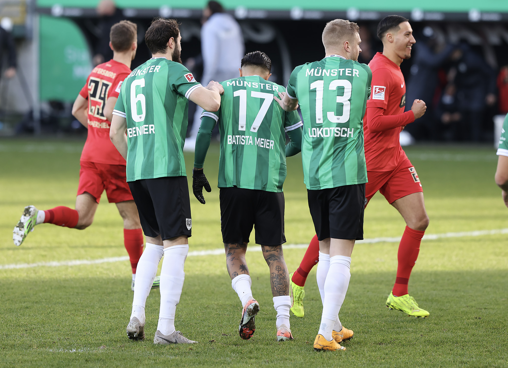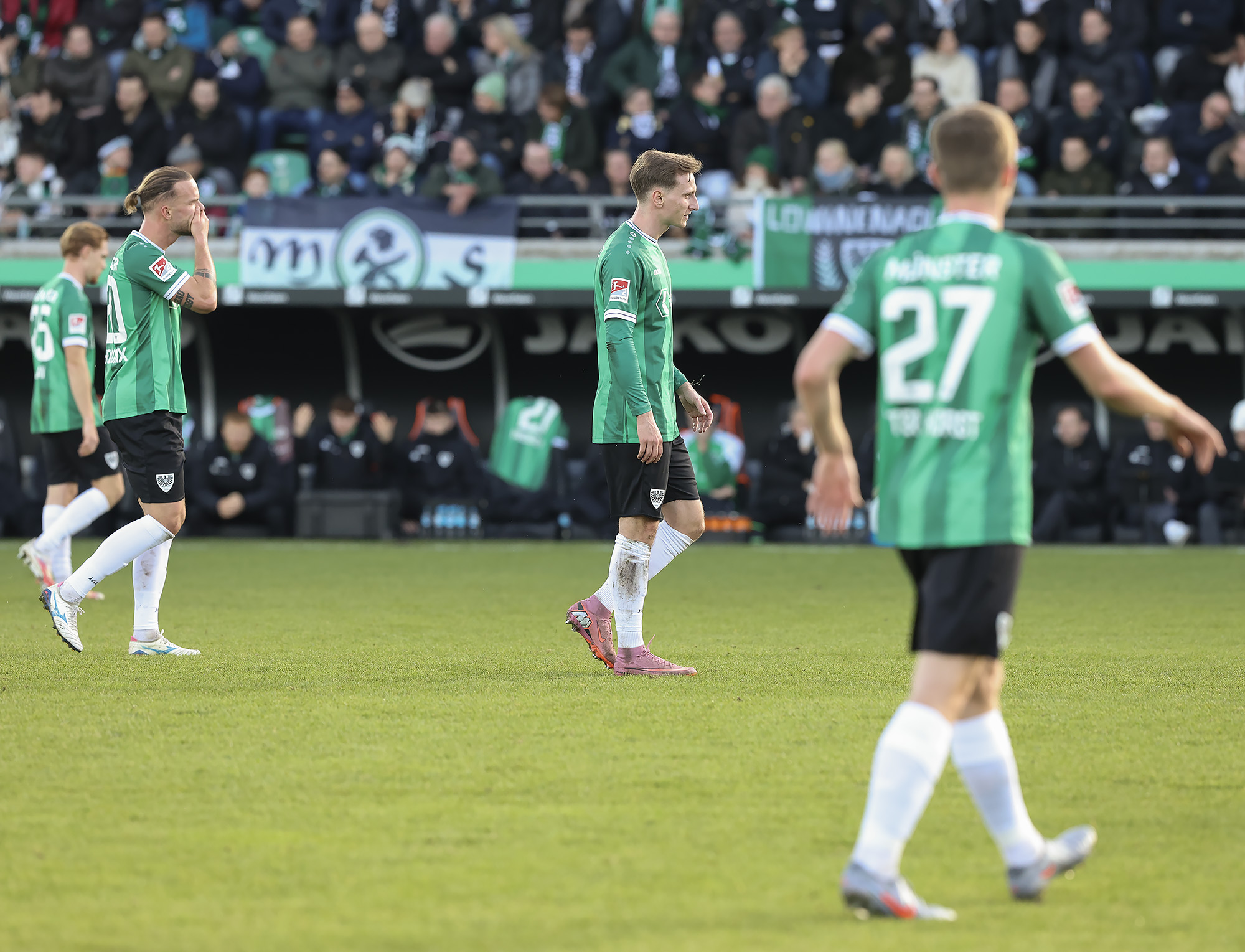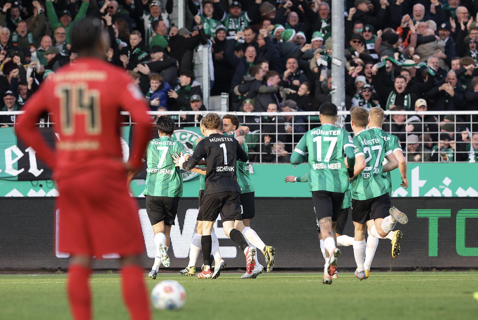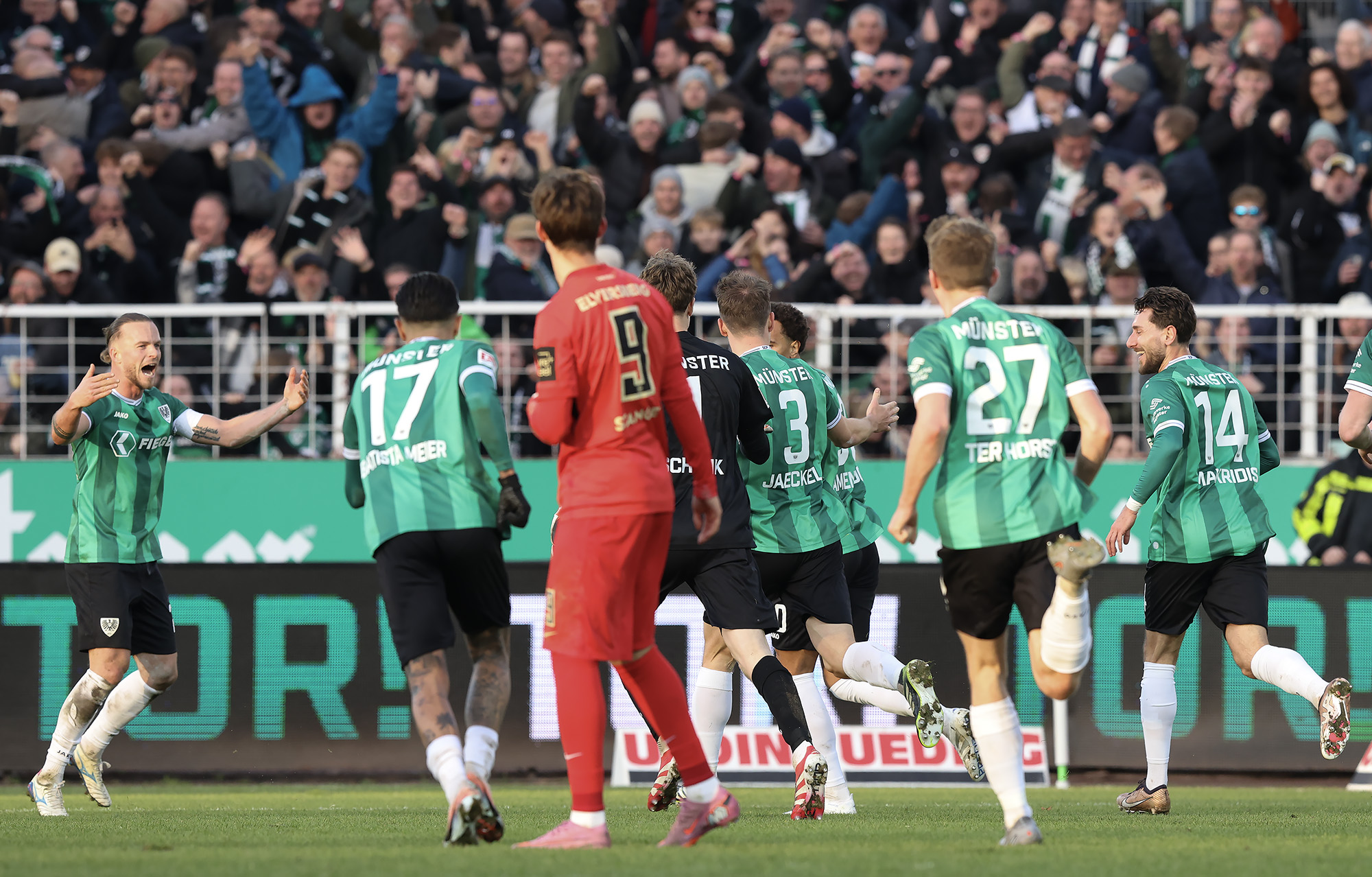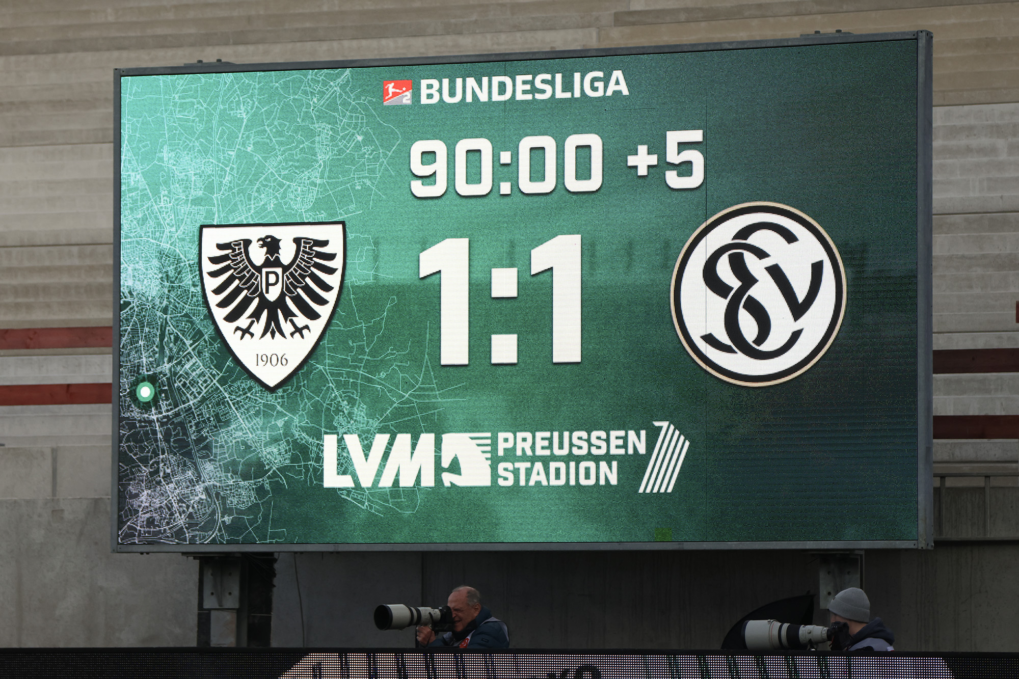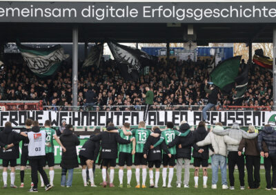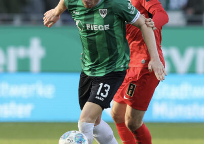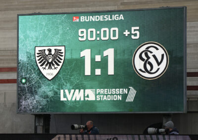 Nach dem Seitenwechsel entwickelte sich zunächst ein offener Schlagabtausch, der mit einer guten Gelegenheit für die Gäste begann: Jano ter Horst war gegen Conté Bambasé jedoch gerade noch rechtzeitig da (51.). Anschließend waren die Hausherren wieder dran: ter Horst bediente zunächst Mees, der jedoch nicht genügend Druck auf dem Ball bekam (52.). Kurz darauf zog das Münsteraner Eigengewächs selbst knapp am langen Pfosten vorbei (53.). Der SCP investierte viel, drang in der Folge aber nur selten ins letzte Drittel vor. Dadurch eröffneten sich dem Gegner Räume zum Kontern – die dieser auch zu nutzen versuchte. Gleich dreimal hielt Schlussmann Johannes Schenk seine Teamkollegen im Spiel (63., 68. und 84.) – die Sportvereinigung war im zweiten Durchgang dem 0:2 näher als Münster dem Ausgleich. Nachdem der eingewechselte Zidan Sertdemir per Direktversuch knapp vorbeizog (90.+1), schien es so, als würde diesmal der Lucky Punch ausbleiben. Doch einen Schachzug hatten die Preußen noch in der Hinterhand: Eine Einwurfflanke vom ebenfalls eingewechselten Torge Paetow verlängerte Paul Jaeckel für den freistehenden Joker Etienne Amenyido, der am zweiten Pfosten einnickte (90.+4) – und den Adlerträgern am vierten Advent einen verdienten Punktgewinn zum Jahresabschluss bescherte.
