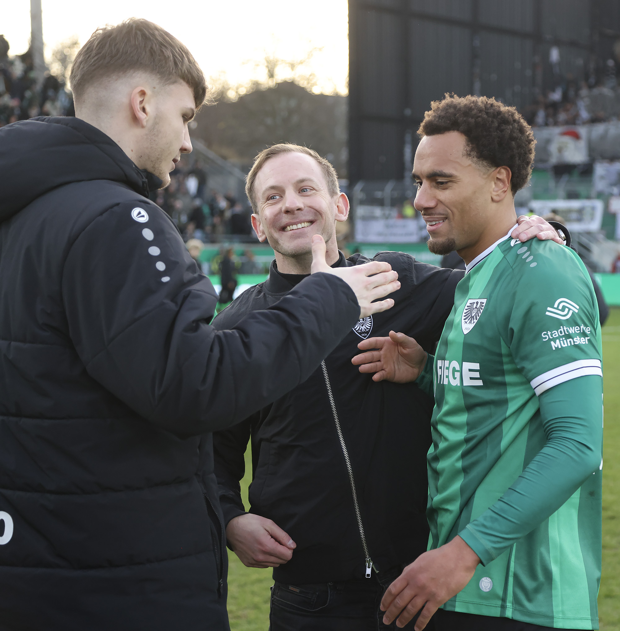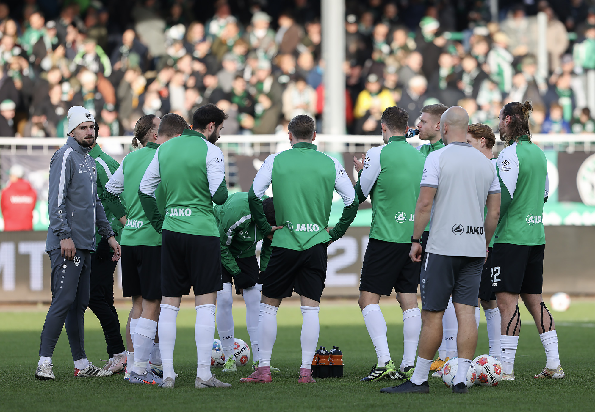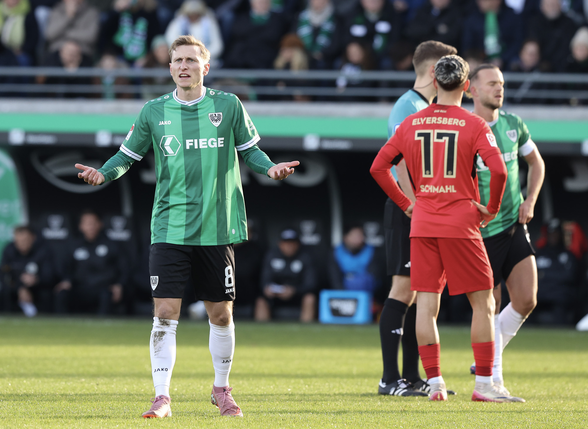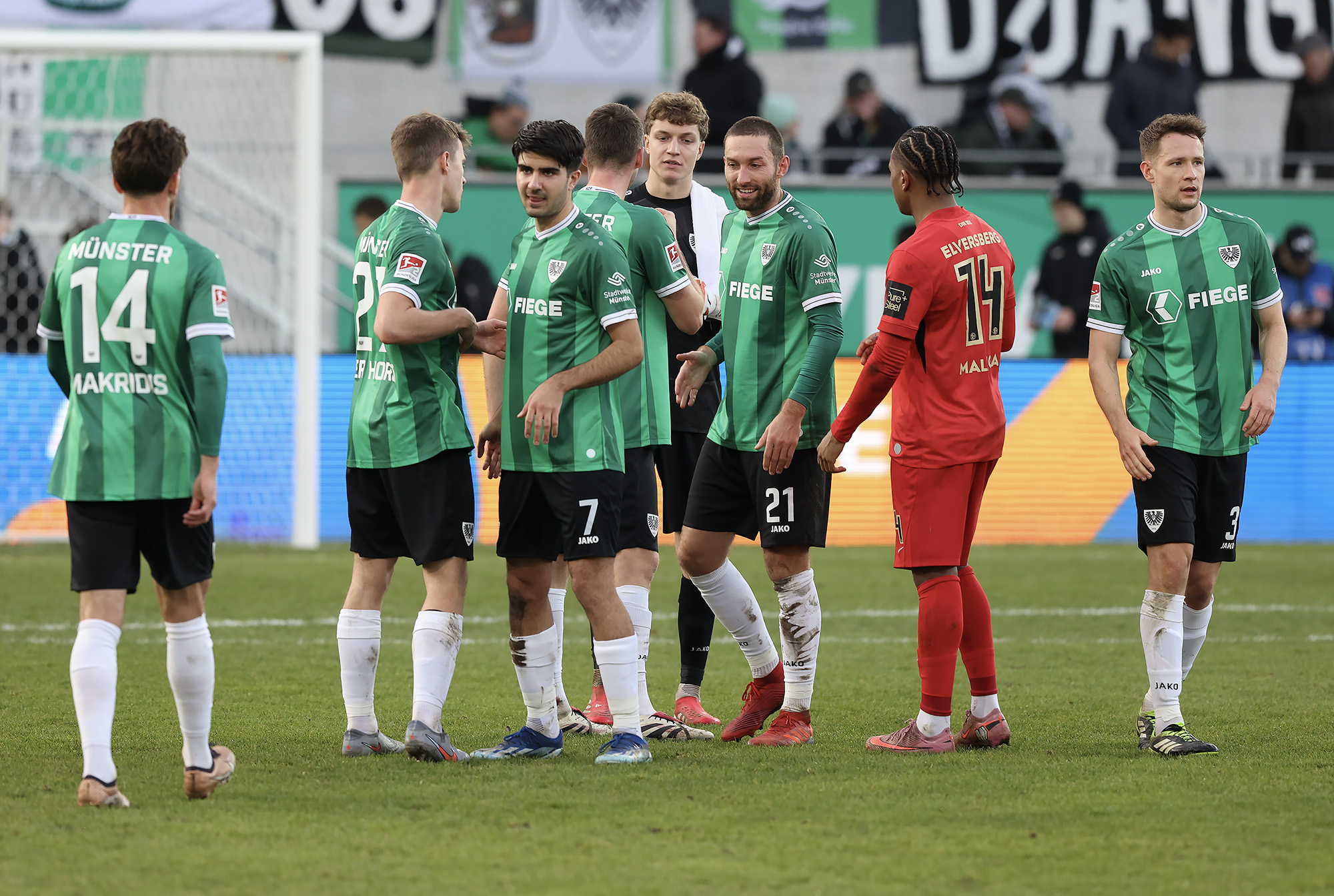 Nach dem Seitenwechsel entwickelte sich zunächst ein offener Schlagabtausch, der mit einer guten Gelegenheit für die Gäste begann: Jano ter Horst war gegen Conté Bambasé jedoch gerade noch rechtzeitig da (51.). Anschließend waren die Hausherren wieder dran: ter Horst bediente zunächst Mees, der jedoch nicht genügend Druck auf dem Ball bekam (52.). Kurz darauf zog das Münsteraner Eigengewächs selbst knapp am langen Pfosten vorbei (53.). Der SCP investierte viel, drang in der Folge aber nur selten ins letzte Drittel vor. Dadurch eröffneten sich dem Gegner Räume zum Kontern – die dieser auch zu nutzen versuchte. Gleich dreimal hielt Schlussmann Johannes Schenk seine Teamkollegen im Spiel (63., 68. und 84.) – die Sportvereinigung war im zweiten Durchgang dem 0:2 näher als Münster dem Ausgleich. Nachdem der eingewechselte Zidan Sertdemir per Direktversuch knapp vorbeizog (90.+1), schien es so, als würde diesmal der Lucky Punch ausbleiben. Doch einen Schachzug hatten die Preußen noch in der Hinterhand: Eine Einwurfflanke vom ebenfalls eingewechselten Torge Paetow verlängerte Paul Jaeckel für den freistehenden Joker Etienne Amenyido, der am zweiten Pfosten einnickte (90.+4) – und den Adlerträgern am vierten Advent einen verdienten Punktgewinn zum Jahresabschluss bescherte.