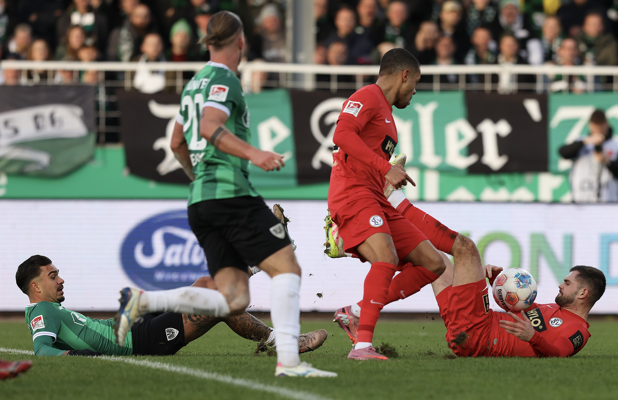Aufstellung SCP: Schenk – ter Horst, Heuer (Paetow, 73.), Jaeckel, Bolay (Amenyido, 87.) – Bouchama (Bouchama, 50.), Benger (Preißinger, 73.), Mees, (Makridis, 73.) Hendrix – Lokotsch, Batista Meier