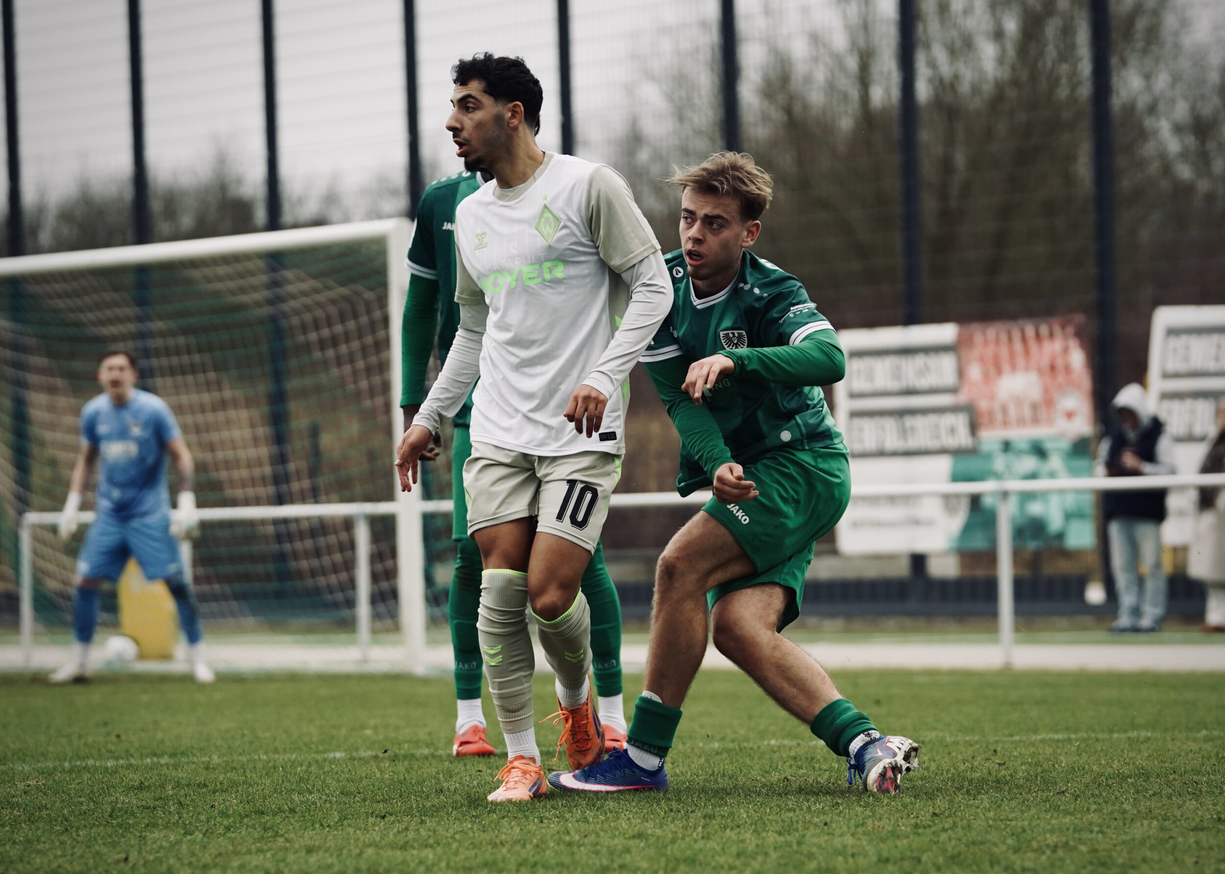 Für die U15 war am Dienstag nach einem harten Kampf im Westfalenpokal gegen die Sportfreunde Siegen Schluss (2:4). Bereits nach vier Minuten lief die Mannschaft von Trainer Johannes Tenbrink einem 0:2-Rückstand hinterher (1. & 4.). Zwar erzielten die Jungadler im Laufe der ersten Halbzeit noch den Anschluss (17.), diesen konterten die Gastgeber aber unmittelbar (27.) und stellten damit den alten Abstand wieder her. In der zweiten Halbzeit gelang beiden Teams jeweils noch ein Treffer, womit sich die Schwarz-Weiß-Grünen am Ende mit dem Ausscheiden abfinden mussten.